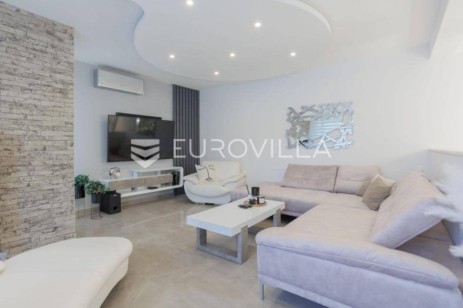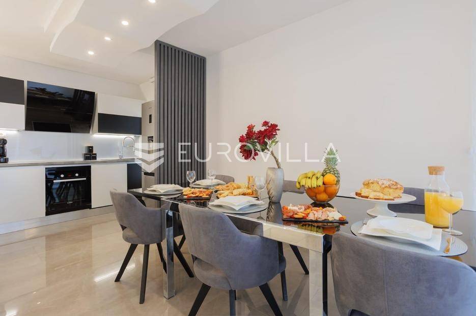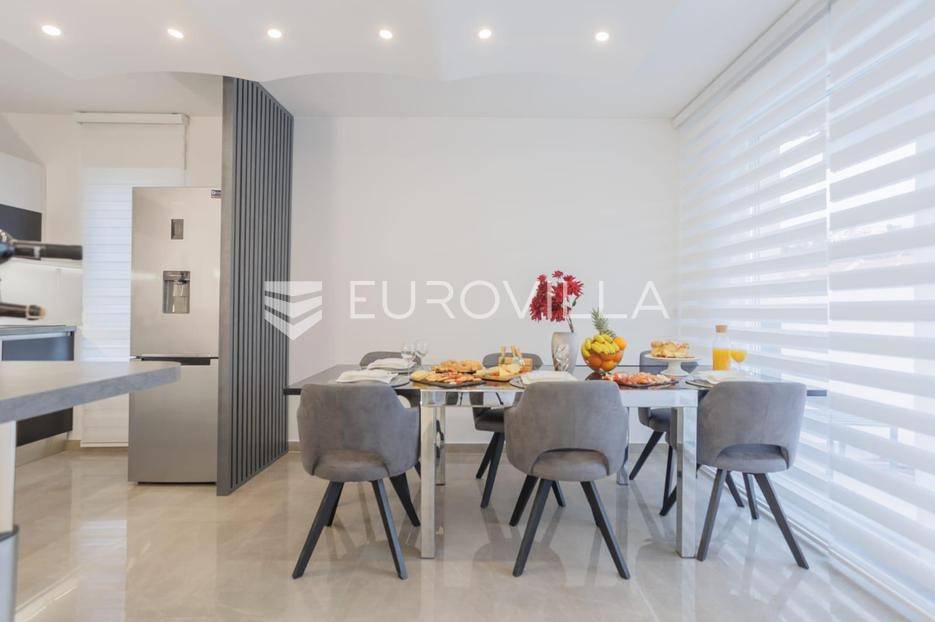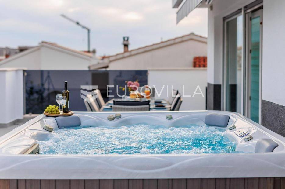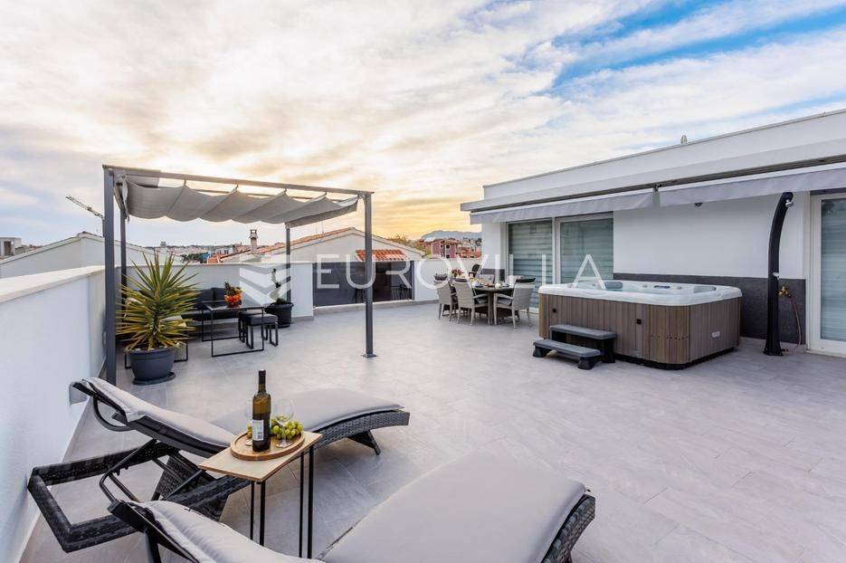 Podstrana, Strožanac, trosoban penthouse na dvije etaže unutarnje površine 101m2 te potpuno opremljene terase površine 90m2.Stan se sastoji od ulaznog dijela, prostranog dnevnog boravka s kuhinjom i blagovaonicom, stubišta, tri spavaće sobe, kupaonice i dodatnog WC-a. Opremljen je sa dvije klima jedinice, po jedna na svakoj etaži. Terasa nudi potpuni ugođaj uz jacuzzi i predivan pogled na more i mjesto.Penthouse je u potpunosti namješten kvalitetnim namještajem i opremljen svim potrebnim kućanskim aparatima. Uz stan dolaze i dva privatna parkirna mjesta, a cijela zgrada opremljena je sustavom videonadzora, čime se osigurava privatnost i sigurnost.Zgrada se nalazi u mirnom obiteljskom kvartu s odličnom infrastrukturom. U blizini stana nalaze se trgovine, teretane, škole, vrtići, fast food objekti, kafići i drugi sadržaji, koji su dostupni bez potrebe za korištenjem automobila.Za dodatne informacije stojimo Vam na raspolaganju.... Više na eurovilla.hr, ID: 304008