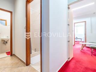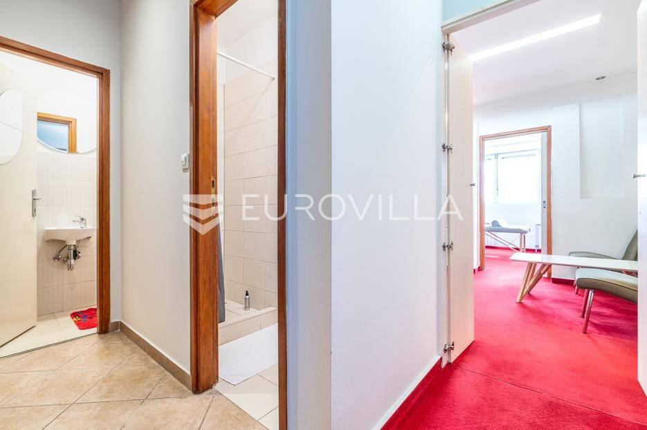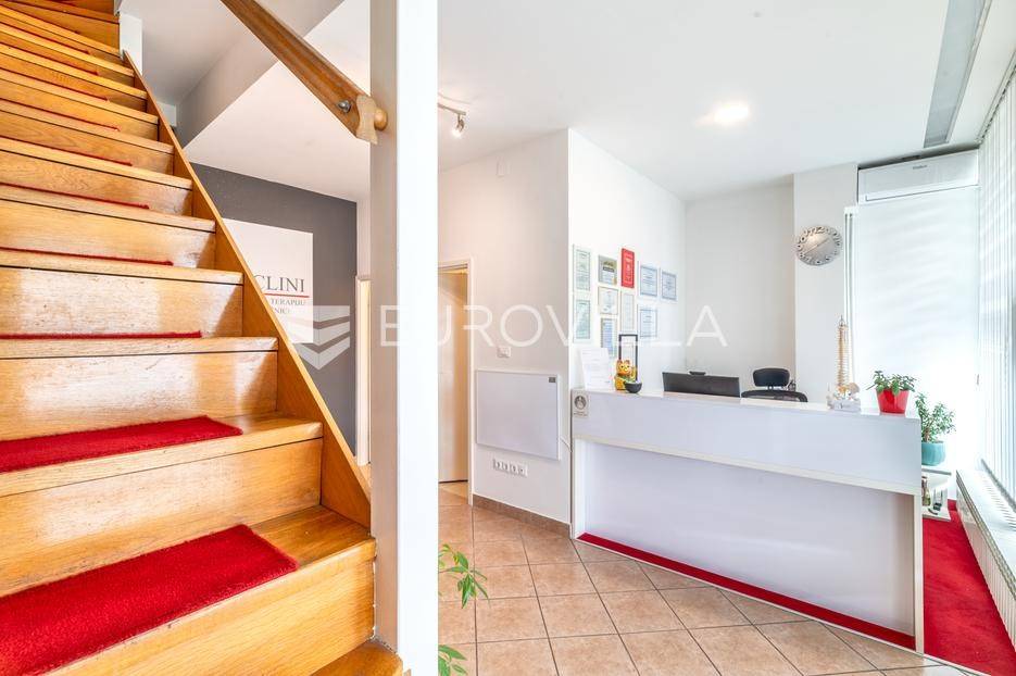 Dvoetažni poslovni prostor ukupne površine 107,10 m2, smješten u prizemlju i na prvom katu kvalitetno održavane zgrade u Ulici grada Vukovara u Zagrebu. Riječ je o funkcionalnom i svestranom prostoru koji svojom strukturom i pozicijom omogućuje različite mogućnosti poslovnog korištenja.Prostor u prizemlju sastoji se od ulaznog dijela koji može služiti kao recepcija ili prostor za prijem stranaka te sanitarnih prostorija koje uključuju kupaonicu i odvojeni toalet. Na katu se nalazi čekaonica ili manja zajednička prostorija te tri odvojene radne sobe koje se mogu prilagoditi potrebama budućeg korisnika.Zahvaljujući rasporedu prostorija i dvjema etažama koje su povezane u skladnu cjelinu, prostor je posebno pogodan za različite vrste ordinacija - medicinske, masažne, ortopedske - no jednako je prikladan i za uredske djelatnosti, savjetodavne usluge ili slične poslovne funkcije.U prostoru je ugrađeno etažno plinsko grijanje, ima klimu a stolarija je od PVC-a.Lokacija u Ulici grada Vukovara pruža iznimnu dostupnost i vidljivost, uz neposrednu blizinu svih važnih sadržaja - javnog prijevoza, poslovnih zona, trgovina i ugostiteljskih objekata. Ova lokacija predstavlja jedan od najtraženijih poslovnih dijelova Zagreba, što dodatno doprinosi atraktivnosti same nekretnine.Za sva pitanja Vam stojimo na raspolaganju.... Više na eurovilla.hr, ID: 306504
