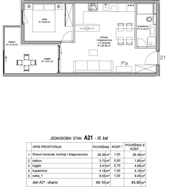 Ovaj prekrasan, jednosoban stan u novogradnji na Visokoj u Splitu predstavlja savršenu priliku za moderan i udoban život. Smješten na trećem katu zgrade s liftom, ovaj stan površine 45.90 m2 nudi idealan spoj funkcionalnosti i stila.Stan se sastoji od prostranog dnevnog boravka, moderno opremljene kuhinje, jedne kupaonice i loggie koja pruža predivan pogled. Novogradnja jamči visoku kvalitetu materijala i izrade, kao i energetsku učinkovitost, što znači niže režijske troškove i ugodniji boravak tijekom cijele godine.Lokacija na Visokoj je izuzetna - u blizini su svi potrebni sadržaji poput trgovina, restorana, škola i javnog prijevoza, što olakšava svakodnevni život. Stan je idealan za pojedince, mlade parove ili kao investicija za iznajmljivanje.Ne propustite priliku postati vlasnikom ovog prekrasnog stana u jednoj od najtraženijih četvrti Splita. Useljenje je predviđeno za 2025. godinu.Sve ostale informacije na upit.... Više na eurovilla.hr, ID: 312418