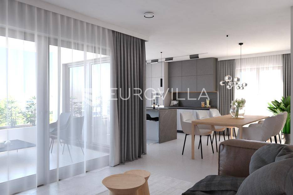 Kaštel Stari, komforan luksuzan trosoban stan od 102,1 m2 u novogradnji, smješten na drugom katu urbane zgrade s liftom i podzemnom garažom.Sastoji se od moderne kuhinje visokog standarda s blagovaonicom te dnevnog boravka otvorenog tipa (32,7 m2), hodnika, tri komforne spavaće sobe, potpuno opremljene kupaonice te dodatnog WC-a i natkrivene terase na jugoistoku. Ukupne tlocrtne površine 102,1 m2; zatvoreni stambeni dio površine 84,3 m2 te velika natkrivena terasa sa žardinjerama veličine 17,8m2.Orijentacija stana je jug - istok, a velike staklene stijene osiguravaju obilje prirodnog svjetla što doprinosi komforu življenja u ovoj nekretnini.Dodatna opcija je kupnja garažnog mjesta, ostave ili vanjskog parkingaPlanirani završetak radova 02/2026. godine.Na prekrasnoj okućnici ugrađen je automatiziran sustav navodnjavanja zelenih površina, te je zasađeno mediteransko odraslo bilje, a zgrada ima i osobu zaduženu za brigu i održavanje prostora i zelenila.Odlična pozicija, u blizini svih sadržaja potrebnih za ugodan život, kao i plaže te šetnica uz more. Izvrsna prometna povezanost i međunarodna Zračna luka Split udaljena je 10 km, a u blizini je i poznata marina za brodove "Kaštela", te izvrsna pristupačna brza cesta.Grad Kaštela, s jednom od najduljih obala u Hrvatskoj, smješten je između dva UNESCO-ova grada, Splita i Trogira. Zahvaljujući izvrsnoj lokaciji, predivnom prirodnom okruženju i bogatoj ponudi sadržaja, predstavlja idealno mjesto za ugodan i kvalitetan život ili godišnji odmor.Visoko kvalitetna gradnja i korištena oprema, izdvajamo neke:postavljene podove, parket i keramičke pločice visoke klaseelektrično podno grijanje s digitalnim upravljanjem postavljeno u kupaonicikompletno opremljena kupaonica (električni bojler za grijanje vode, sanitarije, walk-in tuš u okviru zadanog cjenovnog ranga)ulazna protuprovalna i protupožarna vrataInverter klima uređaj snage 3,5 kW u dnevnom boravku i svim sobamaunutarnja stolarija bijele boje i ravnih, modernih linijavanjska stolarija antracit kombinacija Alu- PVC, s podizno kliznim stijenkamaoluci skriveni u fasadivrhunska toplinska i zvučna izolacija, vanjska fasada 8 cm kamena vunaNekretnina će biti izvedena u rangu A+ energetskog certifikata sukladno standardima.Za više informacija, stojimo Vam na raspolaganju.... Više na eurovilla.hr, ID: 343859