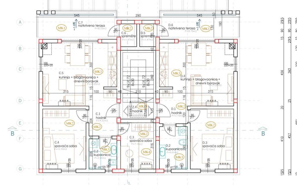 Istra, Štinjan, na prodaju stan neto korisne površine 61.06 m2 na 1. katu novogradnje u izgradnji s dvije spavaće sobe, vanjskim parkirnim mjestom na 900 metara od uređenih plaža.Stan D površine 58 m2 se sastoji od hodnika, kupaonice, dvije spavaće sobe, kuhinje, blagovaonice i dnevnog boravka (open space) te natkrivene terase gdje se nalazi i spremište.OPIS GRADNJE I OPREME • armiranobetonska konstrukcija • kvalitetna toplinska i zvučna izolacija • PVC stolarija s termo staklom • rolete na elektro pogon • protuprovalna ulazna vrata • moderne keramičke obloge • podno grijanje • natkrivena terasaPlanirani početak gradnje predviđen je za ožujak 2026. godine dok se završetak gradnje očekuje prosinac 2027. godine.Štinjan je iznimno atraktivno prigradsko naselje grada Pule, poznato po blizini mora, uređenim plažama i kvalitetnoj infrastrukturi.Plaža Hidrobaza koja se nalazi na 900 metara udaljenosti nudi razne sadržaje poput: ugostiteljskih objekata, sportskih terena (odbojka na pijesku, košarka), plaže za pse, šetnicu uz more dužine 6 km.Blizina Nacionalnog parka Brijuni, Fažana 3 km, centar Pule 7 km, Zračna luka Pula 8 km.Za više informacija stojimo vam na raspolaganju... Više na eurovilla.hr, ID: 366559