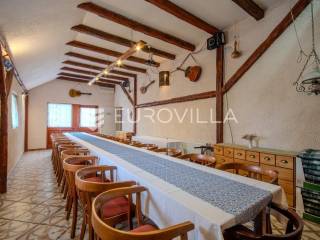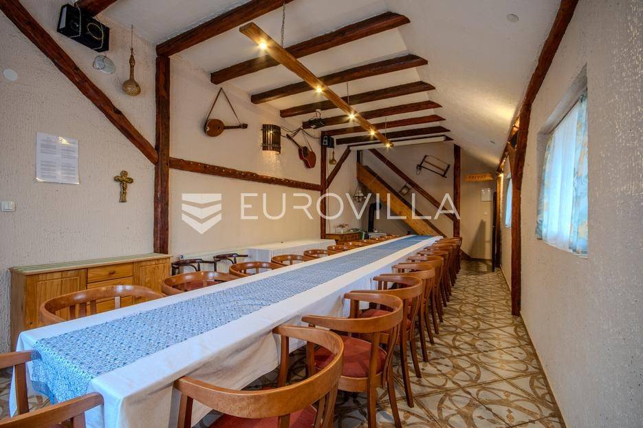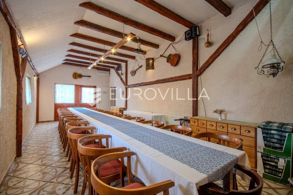 Varaždin, Hallers, uhodan i potpuno opremljen ugostiteljski objekt tlocrtne površine 110 m2, 5 minuta od centra grada, na mirnoj i izdvojenoj lokaciji. Bez dodatnih ulaganja, odmah spreman za rad.Raspored prostora:Podrum: prostorija za pripremu hrane, prostor s pekom i bilijarskim stolom, kuhinja te kupaonica, skladišni prostorPrizemlje: dvije prostrane sale (jedna sa šankom) te dva sanitarna čvoraPotkrovlje: studio apartman s vlastitom kupaonicomInfrastruktura i grijanje:Grijanje: centralno na kruta goriva i kaminStruja: trofaznaVoda: gradski vodovodObjekt ima kapacitet za oko 60 gostiju u unutarnjem prostoru, dok natkrivena terasa površine 40 m² omogućuje smještaj za dodatnih 50 gostiju, te manja terasa za plus 20 osoba.Na zemljištu se nalaze tri pomoćna objekta (44 m², 30 m² i 16 m²) koji nude brojne mogućnosti dodatne monetizacije – skladišni prostori, smještajne jedinice, radionice ili drugi sadržaji prema potrebi budućeg vlasnika.Ukupna površina zemljišta iznosi 5.969 m², u potpunosti je ograđena i uređena, a obuhvaća:voćnjak i uređen okolišterase i dječje igrališteparkiralište za desetak vozilaukrasno jezerceProstrano i ograđeno zemljište, osiguran parking i kompletna infrastruktura čine ovu nekretninu idealnom investicijom za seoski turizam, event-prostor, OPG ili ugostiteljsku djelatnost uz minimalna početna ulaganja.Za više informacija i dogovor oko razgleda, slobodno nas kontaktirajte!... Više na eurovilla.hr, ID: 381364