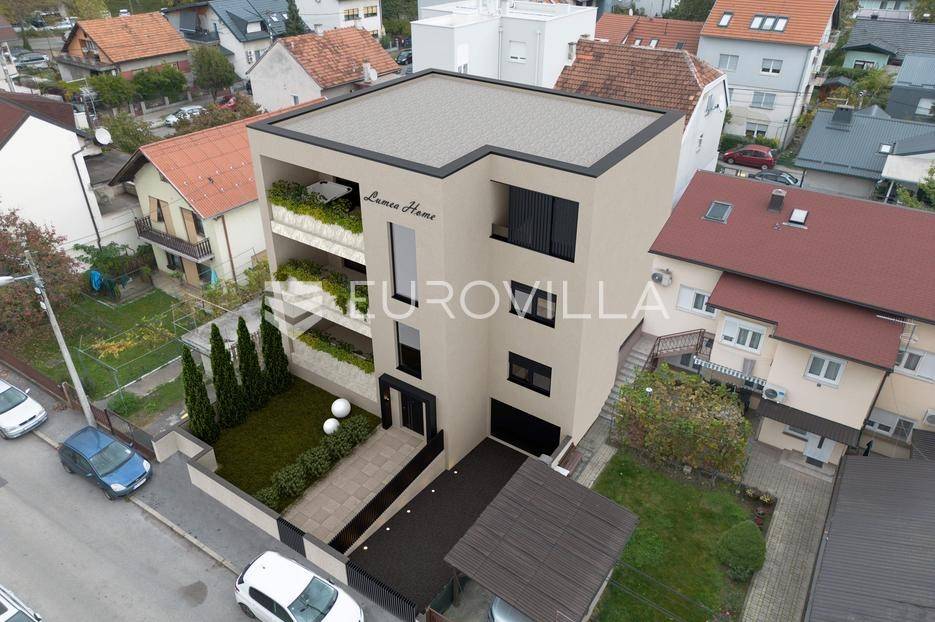 Zagreb, Trešnjevka,ekskluzivan peterosoban dvoetažni penthouse u modernoj novogradnji, smješten na mirnoj, a istovremeno izrazito urbanoj lokaciji.Penthouse zatvorene stambene površine 158,96 m2, s loggiom 13,37 m2 (10,03), natkrivenom terasom 26,80 m2 (13,40), dodatnom loggiom 13,37 m2 (10,03), garažnim parkirnim mjestom 13,76 m2 (6,88 m2) te spremištem 13,49 m2 (6,75 m2) ukupna obračunska neto korisna površina 206,05 m2.Prva etaža obuhvaća ulazni prostor, veliki i iznimno svijetao dnevni boravak s otvorenom kuhinjom i blagovaonicom te izlazom na loggiu, dvije spavaće sobe, kupaonicu i pomoćnu prostoriju.Druga etaža nudi privatnu ulaznu zonu s direktnim izlazom na prostranu natkrivenu terasu, dodatnu kupaonicu i dvije komforne sobe od kojih veća ima pristup loggii s integriranim jacuzzijem. Dvoetažna koncepcija omogućuje vrhunsku organizaciju prostora, potpunu privatnost i jasnu separaciju dnevnih i noćnih sadržaja.Stan je opremljen visokokvalitetnim materijalima i modernim tehničkim rješenjima: troslojni parket, keramika prve klase, podžbukna miješalica za tuš i premium kupaonska oprema, dizalica topline i podno grijanje, klima uređaj s WiFi modulom, PVC stolarija s troslojnim staklom punjenim plinom, električne rolete s komarnicima, protuprovalna ulazna vrata i kvalitetna unutarnja stolarija.Prostrane natkrivene i nenatkrivene terase pružaju dodatni prostor za opuštanje i druženje, dok Jacuzzi na gornjoj loggii daje dodatni premium karakter.Zgrada je izvedena u armiranobetonskoj konstrukciji, projektirana za visoku energetsku učinkovitost, udobnost i dugotrajnost.Penthouse je idealan za obiteljski život, ali i za kupce koji cijene dodatni prostor za rad od kuće uz zonu za opuštanje što je rijetkost za novogradnje na ovoj mikrolokaciji.Lokacija:Mirna stambena ulica s izvrsnom prometnom povezanošću, brzi pristup javnom prijevozu, Zagrebačkoj aveniji i ključnim gradskim pravcima. U blizini se nalaze škole, vrtići, trgovine, sportski i parkovni sadržaji te svi bitni elementi urbanog života.Za sve informacije i upite stojimo na raspolaganju.... Više na eurovilla.hr, ID: 395337