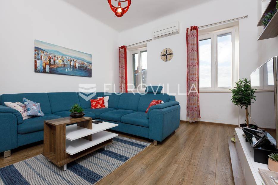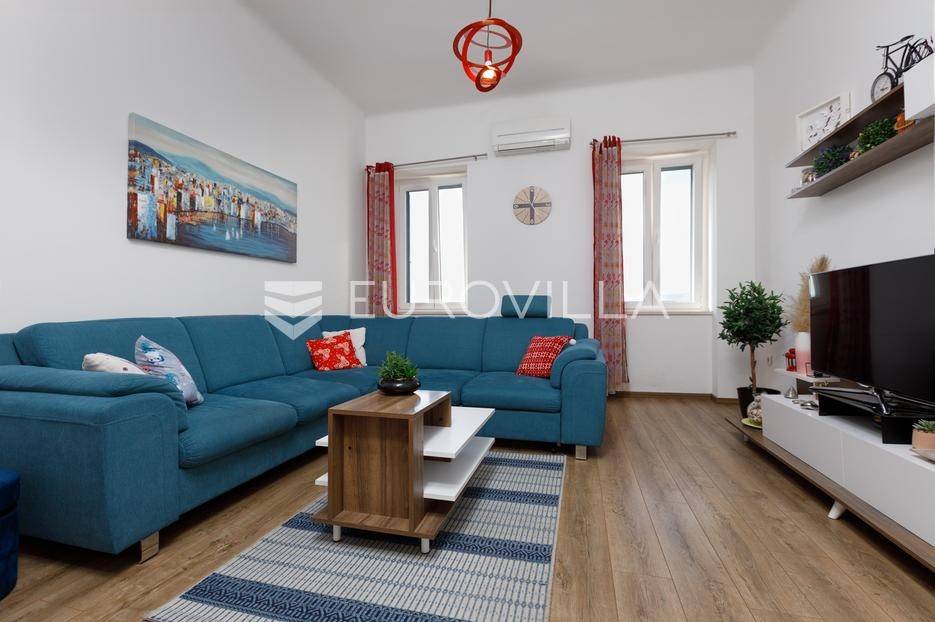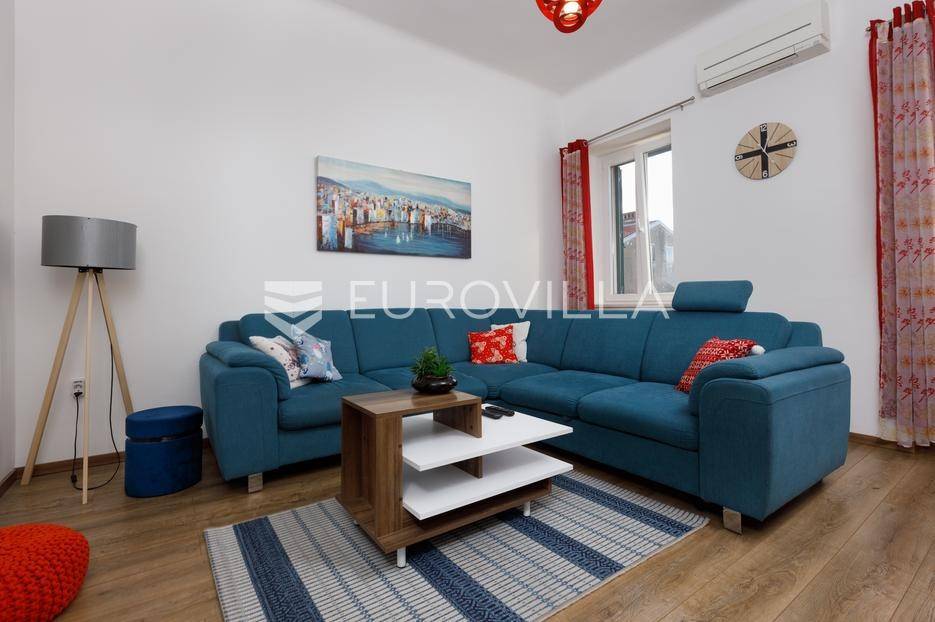 Stan smješten na izuzetnoj lokaciji na prvom katu manje uredne stambene zgrade s pogledom na more.Stan ukupne površine 50,15 m2 sastoji se od hodnika, kupaonice, spavaće sobe, kuhinje s blagavaonicom i dnevnog boravka. Iz sobe i dnevnog boravka se pruža pogled na more i Kvarner.Stan je u potpunosti adaptiran 2017. godine, nove instalacije struje i vode, PVC stolarija, zidne i podne obloge. Prodaje se u potpunosti namješten i odmah useljiv, grijanje na klimu.Odlična lokacija blizu centra grada i svih sadržaja. Nekretnina koja spaja lokaciju, funkcionalnost i potencijal bilo za život ili najam!Za sve ostale informacije slobodno nam se obratite.... Više na eurovilla.hr, ID: 431121