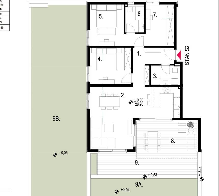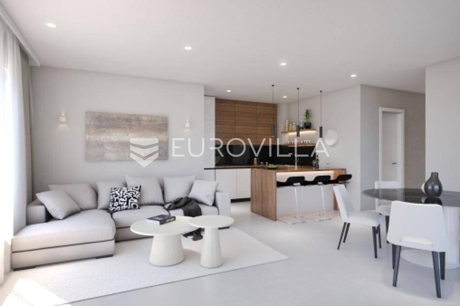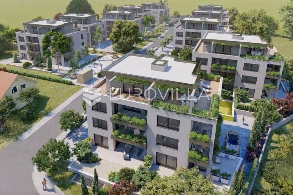 Kaštela Stari, komforan luksuzan trosoban stan smješten u novogradnji na prizemlju urbane zgrade s liftom i podzemnom garažom.Sastoji se od kuhinje s blagovaonicom i dnevnog boravka otvorenog tipa (33,3 m2), hodnika, dvije komforne spavaće sobe, dvije kupaonice, te velike loggie i nenatkrivene terase (34,5m2), zajedno s vrtom orijentirane na jugozapad i naslonjene na terasu stana veličine 109,7 m2. Potpuno opremljena kupaonica i kuhinja visokog standarda. Ukupne tlocrtne površine 119,5,3 m2; zatvoreni stambeni dio veličine 85 m2 uz veliku loggiu površine 17,8 m2, povezanu s terasom od 16,7 m2 te vrt i zelenilo ukupne površine 109,7 m2.Dodatno opcija je kupnja garažnog parkirnog mjesta kao i ostave u garaži zgrde.Orijentacija stana je jug- istok, a velike staklene stijene osiguravaju obilje prirodnog svjetla i prozračnost, što doprinosi komforu življenja u ovoj nekretnini.Planirani završetak radova 12/2025. godine.Na prekrasnoj okućnici ugrađen je automatiziran sustav navodnjavanja zelenih površina, te je zasađeno mediteransko odraslo bilje, a zgrada ima i osobu zaduženu za brigu i održavanje prostora i zelenila.Odlična pozicija, u blizini svih sadržaja potrebnih za ugodan život, kao i plaža te šetnica uz more. Izvrsna prometna povezanost i međunarodna Zračna luka Split udaljena je 10 km, a u blizini je i poznata marina za brodove "Kaštela", te izvrsna pristupačna brza cesta.Grad Kaštela, s jednom od najduljih obala u Hrvatskoj, smješten je između dva UNESCO-ova grada, Splita i Trogira a zahvaljujući izvrsnoj lokaciji, predivnom prirodnom okruženju i bogatoj ponudi sadržaja, predstavlja idealno mjesto za ugodan i kvalitetan život ili godišnji odmor.Nekretnina je odlično ulaganje za tvrtke u sustavu PDV-a.Visoko kvalitetna gradnja i korištena oprema:smart-home sustav (grijanje i hlađenje stana, rasvjeta, električne rolete, zalijevanje zelenih površina...)postavljeni podovi, parket i keramičke pločice visoke klaseelektrično podno grijanje s digitalnim upravljanjem instalirano u kupaonicikompletno opremljena kupaonica (električni bojler za grijanje vode, sanitarije, walk-in tuš u okviru zadanog cjenovnog ranga)ulazna protuprovalna i protupožarna vrataInverter klima uređaj snage 3,5 kW u dnevnom boravku i svim sobamaunutarnja stolarija bijele boje i ravnih, modernih linijavanjska stolarija antracit PVC, s podizno kliznim stijenkamaoluci skriveni u fasadivrhunska toplinska i zvučna izolacija, vanjska fasada 8 cm kamena vunaNekretnina će biti izvedena u rangu A+ energetskog certifikata sukladno standardima.Za više informacija stojimo Vam na raspolaganju.... Više na eurovilla.hr, ID: 471152