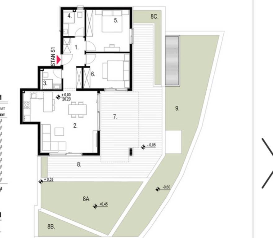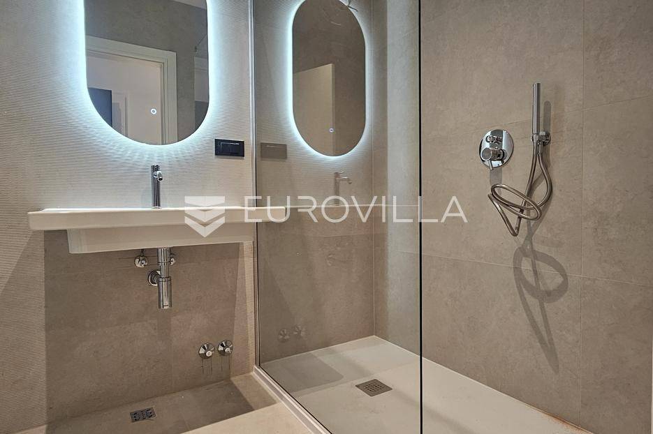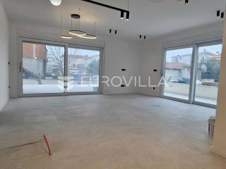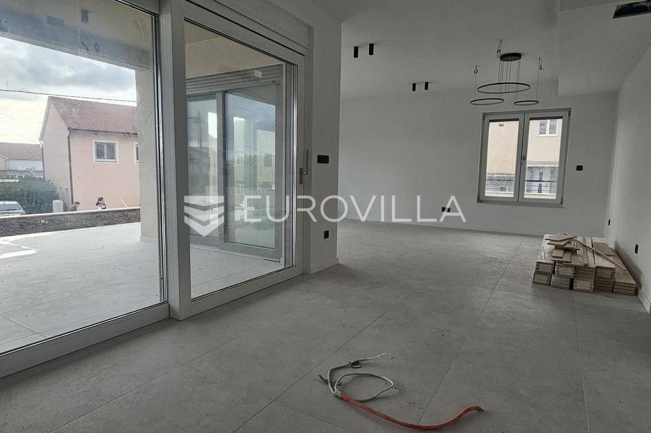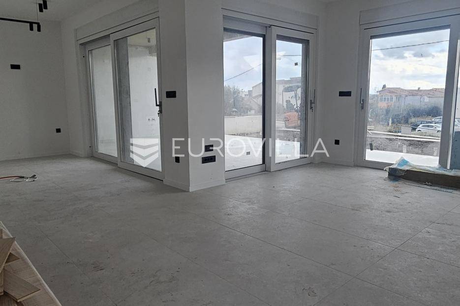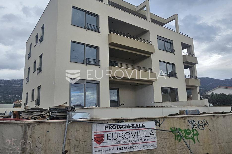 Kaštela, komforan luksuzan dvosoban stan u novgradnji smješten u prizemlju urbane zgrade s liftom i podzemnom garažom.Sastoji se od kuhinje s blagovaonicom i dnevnog boravka otvorenog tipa (32,63 m2), hodnika, dvije komforne spavaće sobe, dvije kupaonice, te velike, djelomično natkrivene terase (65,27 m2), zajedno s vrtom orijentirane na jugoistok i naslonjene na terasu (100,9 m2).Ukupne tlocrtne površine 142,3 m2; zatvoreni stambeni dio površine 77,03 m2 uz veliku, djelomično natkrivenu terasu veličine 65,3 m2, te pripadajući vrt i zelenilo od 100,9 m2.Orijentacija stana je jug- istok, a velike staklene stijene osiguravaju obilje prirodnog svjetla i prozračnost, što doprinosi komforu življenja u ovoj nekretnini.Planirani završetak radova 12/2025. godine.Na prekrasnoj okućnici ugrađen je automatiziran sustav navodnjavanje zelenih površina, te je zasađeno mediteransko odraslo bilje, a zgrada ima i osobu zaduženu za brigu i održavanje prostora i zelenila.Odlična pozicija, u blizini svih sadržaja potrebnih za ugodan život, sve na par minuta hoda, kao i plaža te šetnica uz more. Izvrsna prometna povezanost, Zračna luka Split udaljena je 10 km, a u blizini je i poznata marina za brodove "Kaštela", te izvrsna pristupačna brza cesta.Grad Kaštela, s jednom od najduljih obala u Hrvatskoj, smješten je između dva UNESCO-ova grada, Splita i Trogira. Zahvaljujući izvrsnoj lokaciji, predivnom prirodnom okruženju i bogatoj ponudi sadržaja, predstavlja idealno mjesto za ugodan i kvalitetan život.Nekretnina je odlično ulaganje za tvrtke u sustavu PDV-aVisoko kvalitetna gradnja i korištena oprema:smart-home sustav (grijanje i hlađenje stana, rasvjeta, električne rolete, zalijevanje zelenih površina...)postavljeni podovi, parket i keramičke pločice visoke klaseelektrično podno grijanje s digitalnim upravljanjem instalirano u kupaonicikompletna opremljeno kupaonica (električni bojler za grijanje vode, sanitarije, walk-in tuš u okviru zadanog cjenovnog ranga)ulazna protuprovalna i protupožarna vrataInverter klima uređaj snage 3,5 kW u dnevnom boravku i svim sobamaunutarnja stolarija bijele boje i ravnih, modernih linijavanjska stolarija antracit PVC, s podizno kliznim stijenkamaoluci skriveni u fasadivrhunska toplinska i zvučna izolacija, vanjska fasada 8 cm kamena vunaNekretnina će biti izvedena u rangu A+ energetskog certifikata sukladno standardima.Za više informacija stojimo Vam na raspolaganju.... Više na eurovilla.hr, ID: 492202