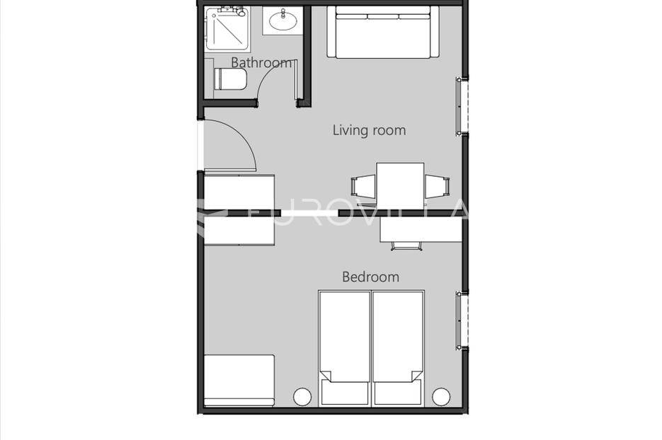 Predstavljamo iznimno rijedak i pažljivo osmišljen projekt vrhunske kvalitete, namijenjen svima koji traže savršenu kombinaciju luksuza, funkcionalnosti i investicijskog potencijala.Projekt obuhvaća 30 modernih stanova, projektiranih prema najvišim standardima suvremenog stanovanja.U ponudi su garsonijere i jednosobni stanovi površina od 13 m² do 42 m², idealni za osobno korištenje, turistički najam ili dugoročnu investiciju.Stan A27 površine 29,12 m² na drugom katu, sastoji se od dnevnog boravka s kuhinjom, sobe, kupaonice.Stan je funkcionalno raspoređen, maksimalno iskorištenog prostora.Opis projekta je Smart Home sustav u svim stanovima️, a grijanje i hlađenje putem klima uređaja️.Stanovi na 1. katu su potpuno namješteni️, a stanovi na 2. katu opremljeni zavjesama i televizorom.️Dodatno kompletno opremanje stana moguće je uz dogovor s investitorom.Projekt je osmišljen kao luksuzni rezidencijalno-turistički koncept, koji stanarima pruža vrhunsku razinu komfora i usluge.U prizemlju zgrade nalazi se ekskluzivni sadržaj dostupan stanarima, restoran, wellness centar s unutarnjim bazenom, jacuzzijem, tri saune i kozmetičkim i wellness uslugama.Svaki stanar dobiva personaliziranu karticu za korištenje svih sadržaja.Mirna i atraktivna lokacija, par minuta hoda do centra grada, nekoliko stotina metara od mora, idealna kombinacija privatnosti i blizine svih sadržaja.Parkirno mjesto dostupno je naknadno za kupnju od 20.000 €.Za detaljnije informacije i razgled nekretnine, slobodno nas kontaktirajte.... Više na eurovilla.hr, ID: 495302