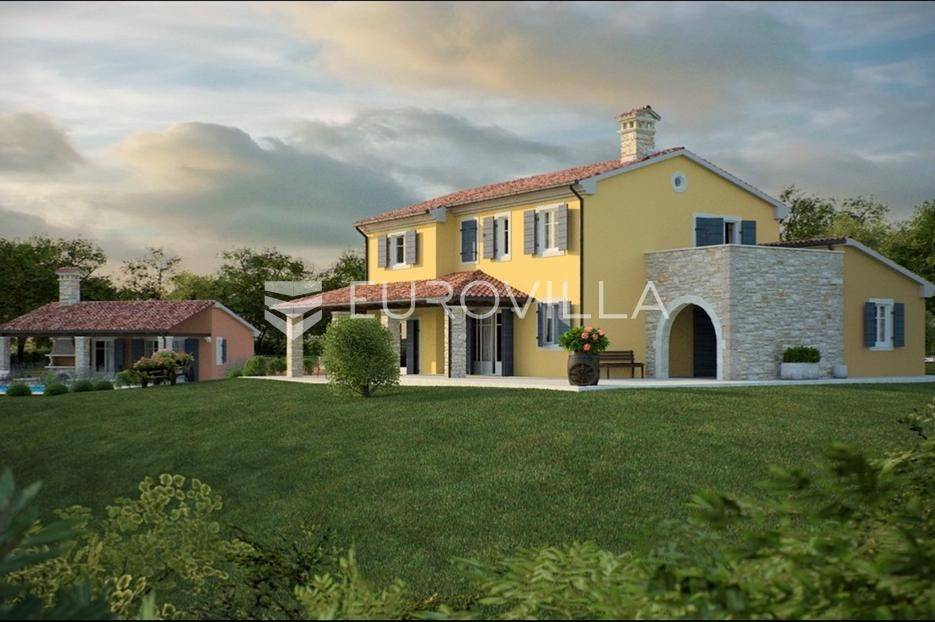 U srcu netaknute prirode središnje Istre, u mirnom i zelenilom okruženom Trvižu, prodaje se ekskluzivno zemljište ukupne površine 11.099 m2 s pravomoćnom građevinskom dozvolom i započetom gradnjom.Ova jedinstvena nekretnina nudi savršenu kombinaciju privatnosti, luksuza i prirodnog ambijenta, idealno za privatnu rezidenciju ili investiciju u luksuzni turizam.Projekt obuhvaća:1. Glavna vila – 324,68 m2Katnost: prizemlje + 1. kat3 prostrane spavaće sobePredviđen moderan raspored s naglaskom na komfor i eleganciju2. Gostinjska kuća – 153,42 m2Katnost: podrum + prizemlje1 spavaća sobaIdealno za goste ili osoblje3. Bazen – 84 m2Prostrani bazen savršeno uklopljen u prirodni ambijentStatus projekta:- Izrađena kompletna projektna dokumentacija za glavni projekt- Ishođena pravomoćna građevinska dozvola- Prijavljen početak gradnje- Plaćen komunalni doprinos- Izgradnja temelja glavnog objektaKupcu se pruža mogućnost kupnje u trenutnoj fazi (s temeljima) ili kompletne izgradnje svih objekata po dogovoru.Velika površina zemljišta osigurava potpunu privatnost, mir i brojne mogućnosti dodatnog uređenja (maslinik, vinograd, sportski sadržaji, wellness zona i sl.).Lokacija nudi savršen balans između izoliranosti i dobre prometne povezanosti – Pazin i svi potrebni sadržaji nalaze se na kratkoj udaljenosti.Mogućnost dogovora oko završetka projekta po sistemu “ključ u ruke”.Za sva dodatna pitanja ili dogovor oko razgledavanja, stojimo vam na raspolaganju.... Više na eurovilla.hr, ID: 510382