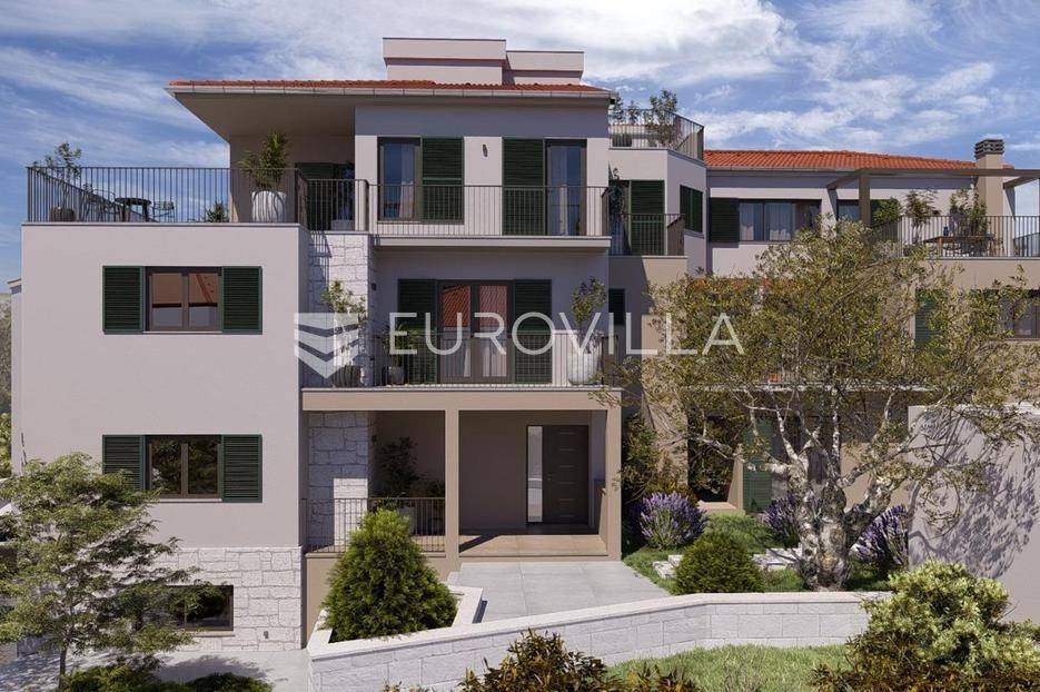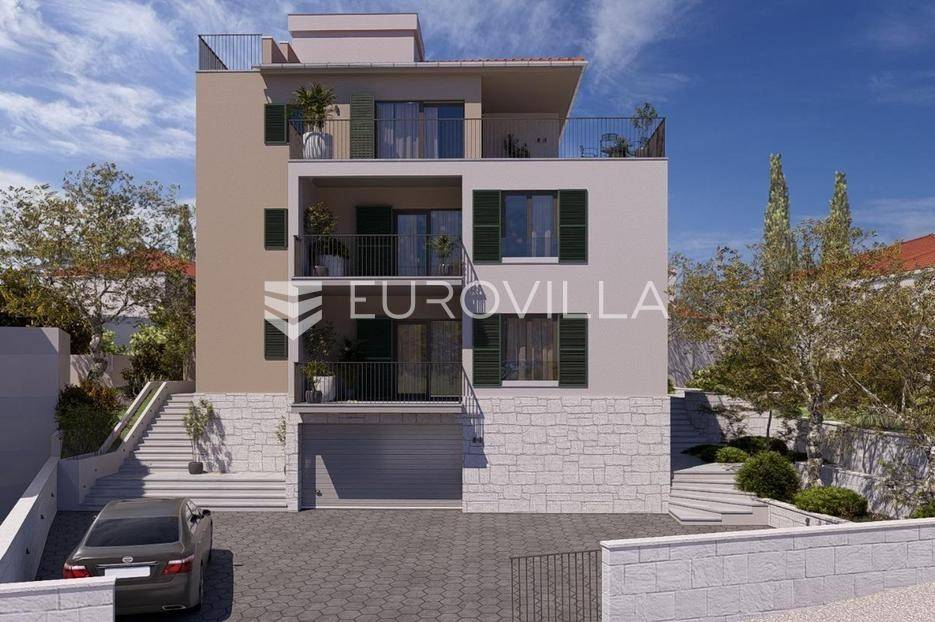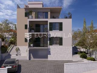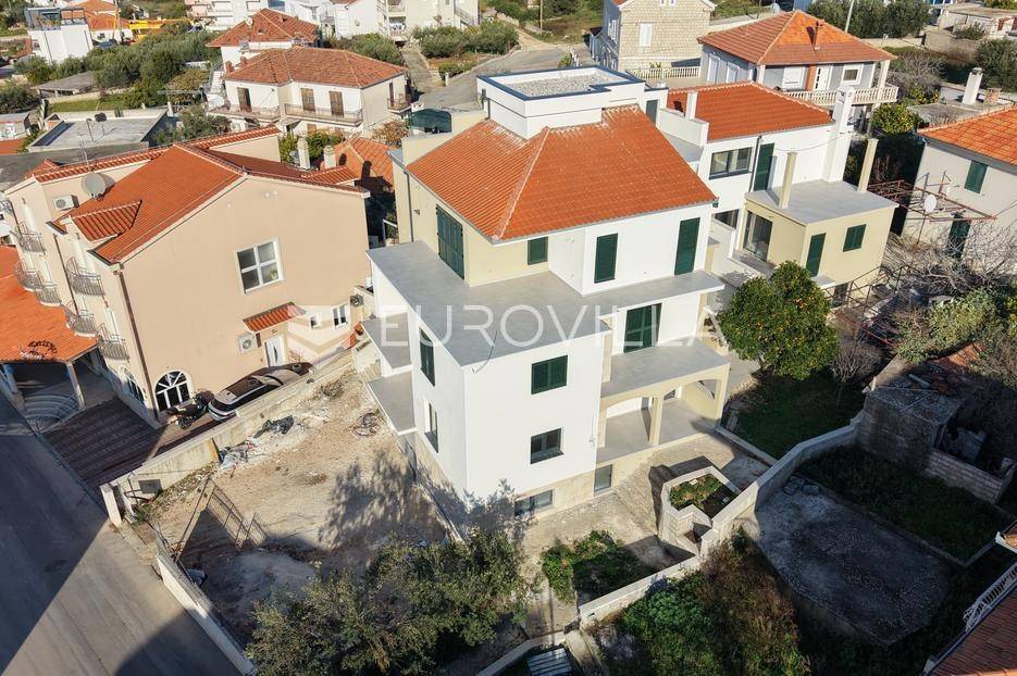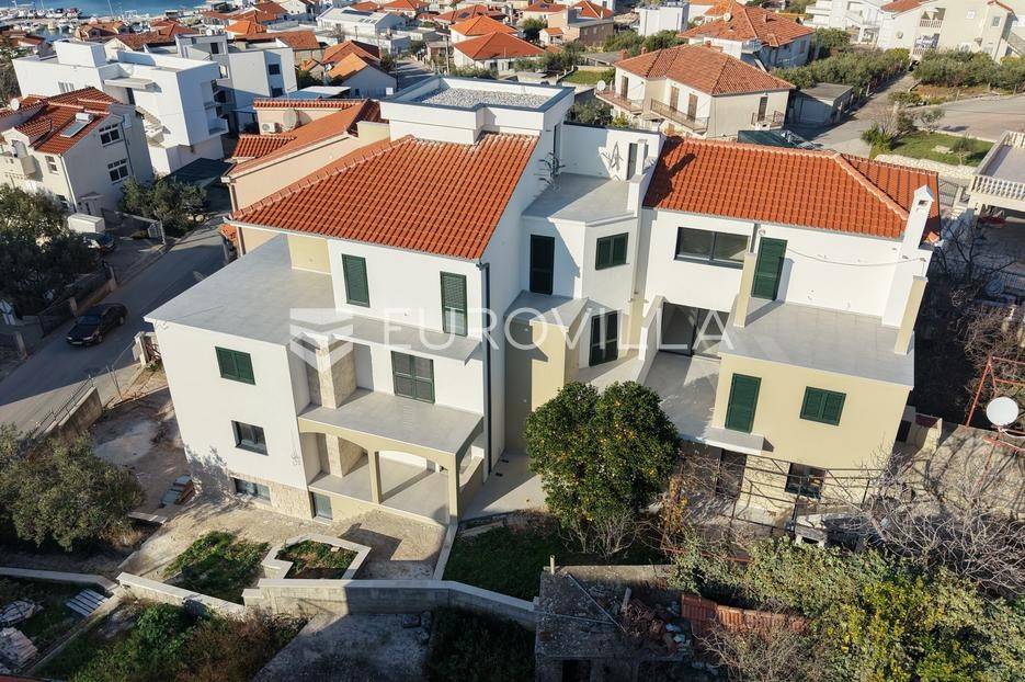Čiovo - Okrug Gornji | Ekskluzivna prodaja moderne novogradnje, šest stambenih jedinica s pogedom na moreNa prodaju je atraktivna stambena zgrada s ukupno šest stambenih jedinica, smještena na iznimno poželjnoj lokaciji u Okrugu Gornjem, na otoku Čiovu.Projekt je osmišljen i izveden prema najvišim građevinskim standardima, uz poseban naglasak na korištenje visokokvalitetnih materijala. Sva keramika i sanitarije nabavljene su u Credo centru, dok je arhitektonski ured DWG izradio projekt stolarije zasebno za svaku stambenu jedinicu.Objekt je u završnoj fazi izvođenja, a planirani završetak radova i useljenje predviđeni su do ljeta 2026. godine.STAN 3- dvosoban stan na prvom katu. Sastoji se od ulaznog hodnika, WC-a, kupaonice, praonice, dvije spavaće sobe, kuhinje s blagovaonicom i dnevnog boravka, stambene površine 84, 22 m2.Pripada mu loggi-a površine 11, 55 m2s predivnim pogledom, te dva balkona ( 10, 94 m2 i 8, 74 m2 ). Jedno vanjsko parkirno mjesto uključeno je u cijenu.Stan ima predivan pogled na more, a jugozapadna orijentacija obećava svijetao i ugodan dnevni prostor.Ukupna neto površina iznosi 103 m2.Izvrsna lokacija, pristup s glavne prometnice, a samo nekoliko minuta hoda udaljena od uređenih plaža, kafića, restorana,...Za sve ostale informacije stojimo Vam na raspolaganju.... Više na eurovilla.hr, ID: 516347