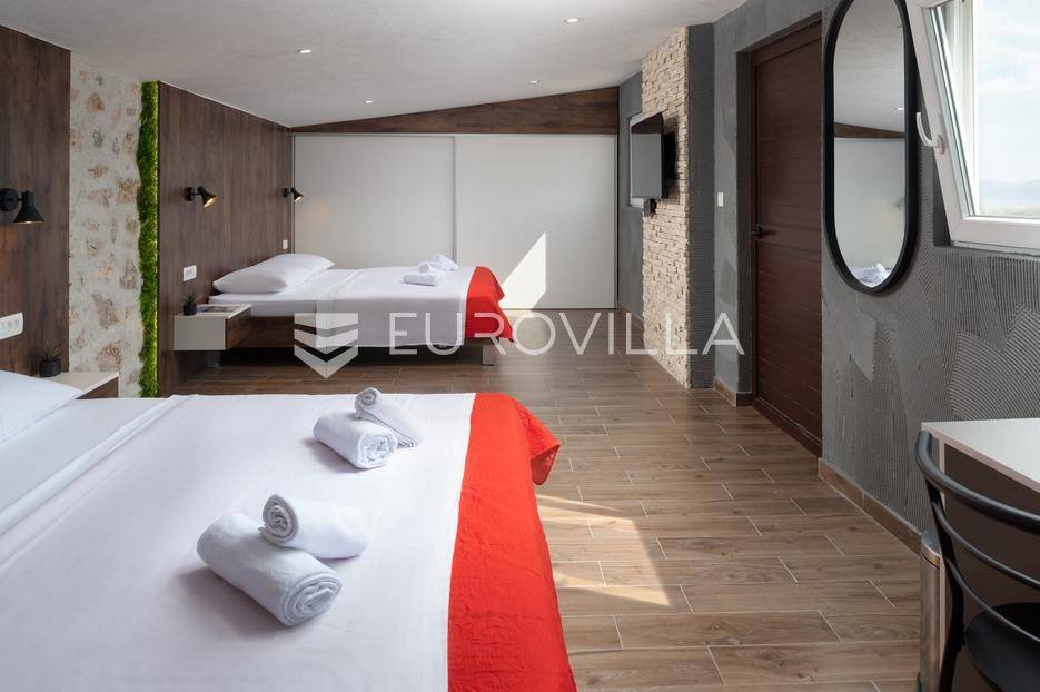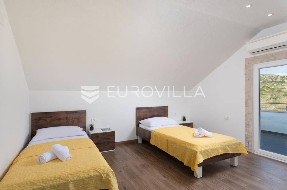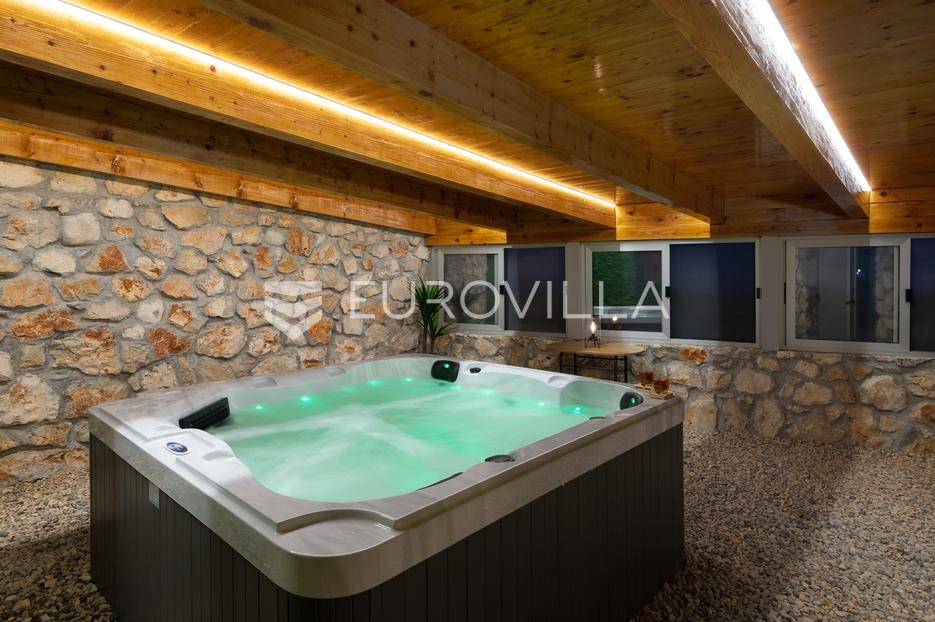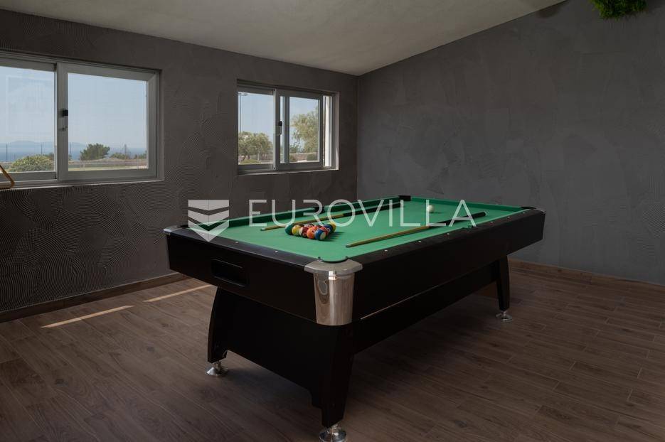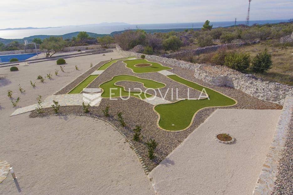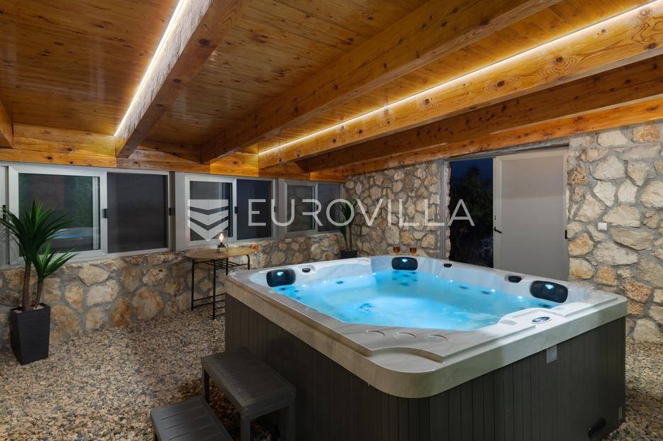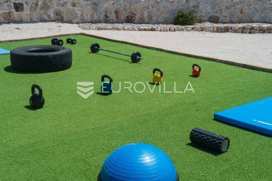 Brač, uređeno imanje posloženo na skoro 10 000 m2 predstavlja savršeno je mjesto za uživanje i odmor.Vila broji četiri spavaće sobe , četiri kupaonice , WC , dnevni boravak i suvremeno opremljenu kuhinju ( perilica za sude, mikrovalnu, aparat za kavu, pećnicu, toster, frižider i ledomat ). U potpunosti je opremljena s perilicom za robu , četiri TV-a sa satelitskim programima , a sve prostorije su pokrivene s klima uređajima i neograničenim WI-FI internetom.Objekt ima smještajni kapacitet za ukupno dvanaest osoba.Pomno osmišljena okućnica krije vanjski bazen ( 32 m2 ) , jacuzzi , finsku saunu , dva vanjska tuša , padel teren , košarkaški teren , balotaški teren , mini golf , vanjsku teretanu , stolni tenis , stolni nogomet , biljarski stol , pikado , dječije igralište, dva vanjska kamina, vanjsku ljetnu kuhinju i vinski podrum.Za sve ostale informacije, stojimo Vam na raspolaganju.... Više na eurovilla.hr, ID: 585396