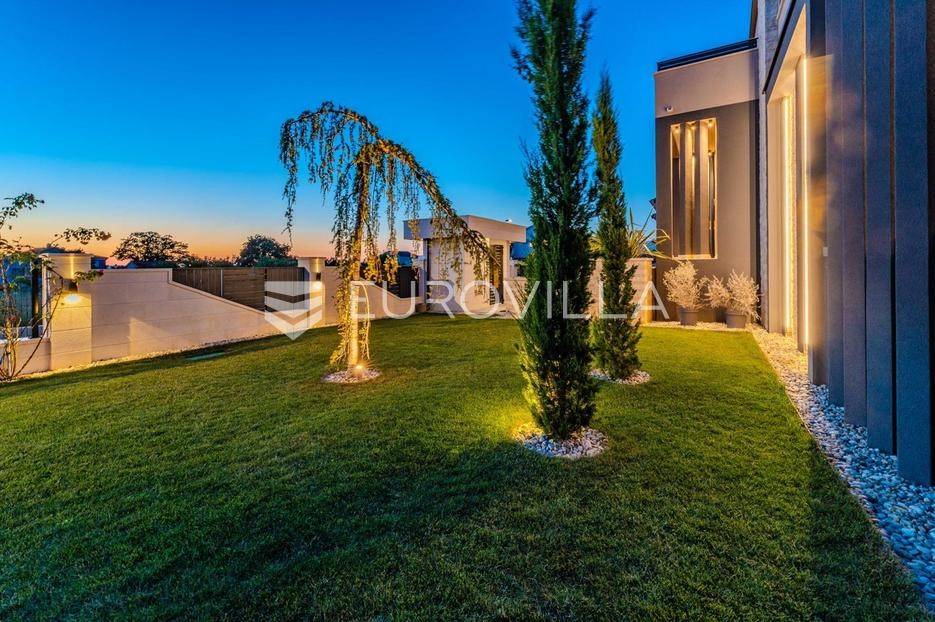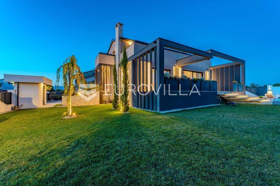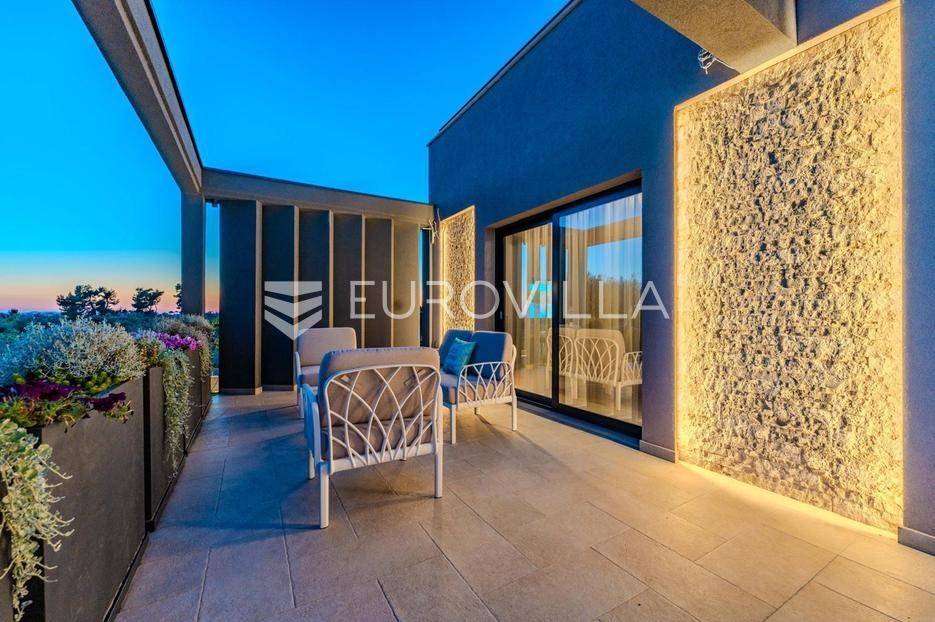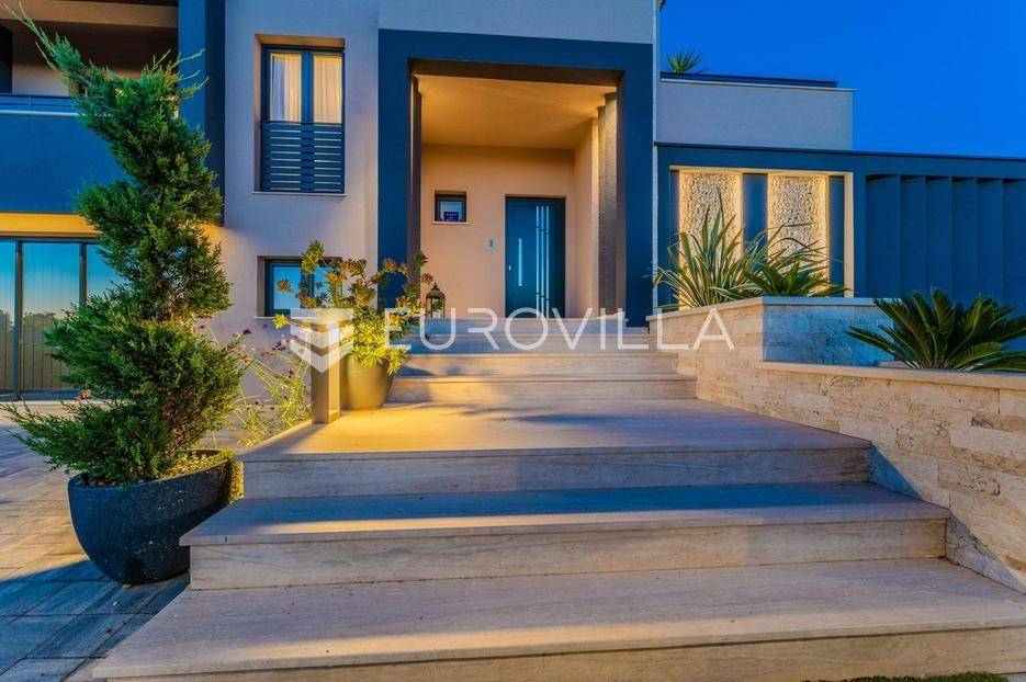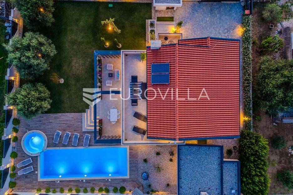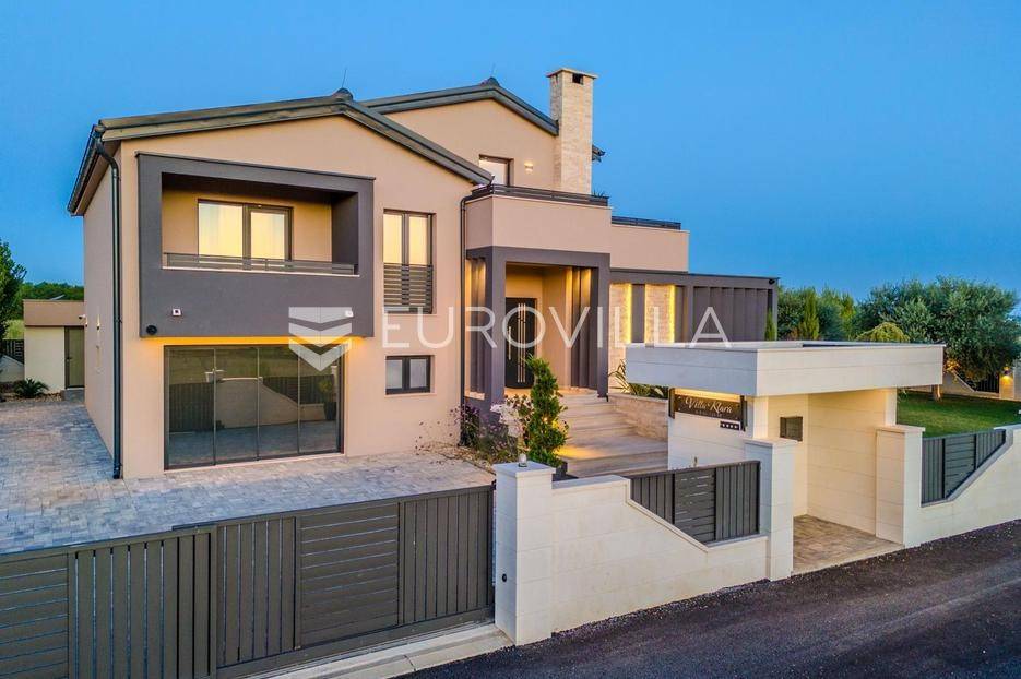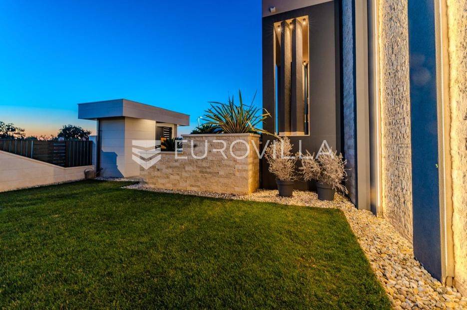 Zadar, Privlaka, moderna kuća smještena na mirnoj lokaciji, nalazi se na zemljištu površine 913 m2.Kuća se prostire na tri etaže, ima četiri spavaće sobe te pet kupaonica.Na prvoj etaži nalazi se prostor predviđen za teretanu te prostorija za odmor i opuštanje.Na drugoj etaži nalazi se prostrani dnevni boravak, kuhinja i blagovaonica s izlazom na terasu.U dvorištu kuće nalazi se bazen, sunčalište te prekrasna ljetna kuhinja, idealno za opuštanje i uživanje u mirnom okruženju i prekrasno uređenom vrtu.Kuća je kompletno te moderno opremljena visokokvalitetnim namještajem i opremom ( podno grijanje, dizalica topline, videonadzor, bušotina te sustav navodnjavanja).Ova prostrana kuća savršen je spoj luksuza, udobnosti i prirodne ljepote.Uredno vlasništvo.Više informacija na upit.... Više na eurovilla.hr, ID: 591906