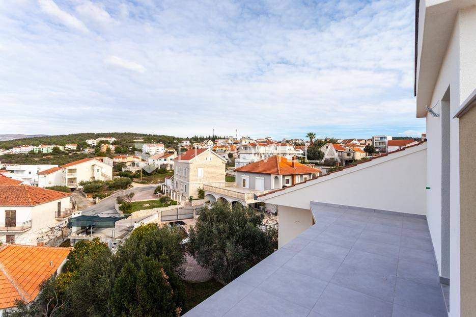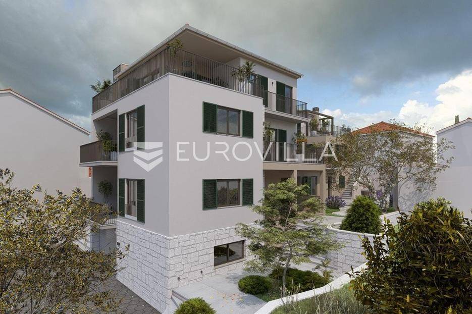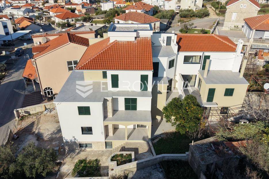 Čiovo - Okrug Gornji | Ekskluzivna prodaja novogradnje, šest stambenih jedinica s pogedom na moreNa prodaju je atraktivna stambena zgrada s ukupno šest stambenih jedinica, smještena na iznimno poželjnoj lokaciji u Okrugu Gornjem, na otoku Čiovu.Projekt je osmišljen i izveden prema najvišim građevinskim standardima, uz poseban naglasak na korištenje visokokvalitetnih materijala. Sva keramika i sanitarije nabavljene su u Credo centru, dok je arhitektonski ured DWG izradio projekt stolarije zasebno za svaku stambenu jedinicu.Objekt je u završnoj fazi izvođenja, a planirani završetak radova i useljenje predviđeni su do ljeta 2026. godine.STAN 4- dvosoban stan na prvom katu. Sastoji se od ulaznog hodnika, WC-a s praonicom, kupaonice, predsoblja, dvije spavaće sobe, kuhinje s blagovaonicom i dnevnog boravka, ukupne stambene površine 83, 73 m2.Pripadaju mu dva balkona površine 6, 56 m2 i 13, 20 m2 s pogledom na more.Jedno vanjsko nenatkriveno parkirno mjesto je uključeno u cijenu.Ukupna neto površina iznosi 91, 74 m2.Izvrsna lokacija, pristup s glavne prometnice, a samo nekoliko minuta hoda udaljena od uređenih plaža, kafića, restorana,...Za sve ostale informacije stojimo Vam na raspolaganju.... Više na eurovilla.hr, ID: 610620