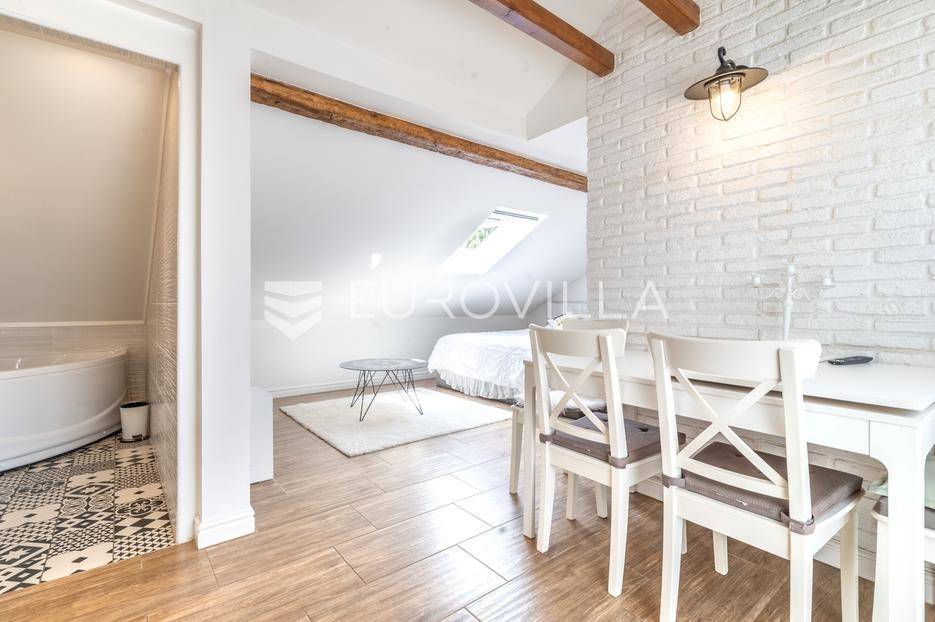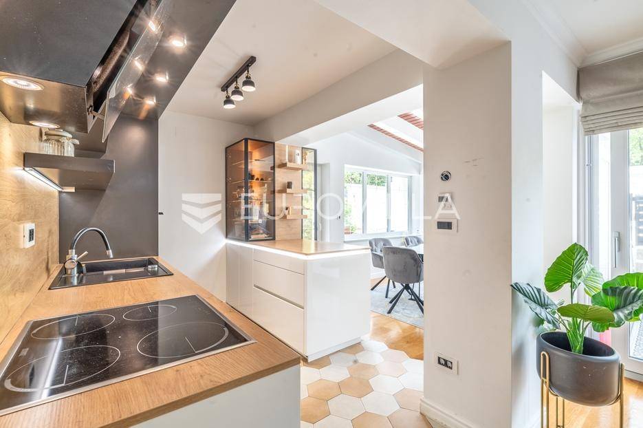 Zagreb, Podsljeme, luksuzna kuća s bazenom u mirnom i zelenom okruženju podsljemenske zone. Kuća se prostire na četiri etaže - podrum, prizemlje, prvi i drugi kat te nudi iznimnu funkcionalnost i udobnost za obiteljski život, ali i mogućnost odvojenog smještaja.Raspored prostorija:Prizemlje:Prostran dnevni boravak, moderno uređena kuhinja i blagovaonica s konceptom otvorenog tlocrta te gostinjski toalet. Iz dnevnog boravka se izlazi na prekrasnu terasu i uređeno dvorište s bazenom.Podrum:Velika multifunkcionalna prostorija s mnoštvom ugradbenih ormara, malom izbom te direktnim izlazom u garažu.Prvi kat:Glavna spavaća soba, prostrana kupaonica, te dvije dodatne dječje sobe.Drugi kat (potkrovlje):Odvojen apartman koji uključuje kuhinju, kupaonicu, spavaću sobu te balkon s prekrasnim pogledom.Kuća se iznajmljuje kompletno namještena te opremljena svim uređajima, a kroz sve etaže proteže se podno grijanje.Dodatne prednosti:-bazen-garaža + vanjsko parkirno mjesto-mirna ulica bez prometa-blizina škole, vrtića i dućana-odlična prometna povezanost s centrom Zagreba-idealna kombinacija života u prirodi i urbanog komforaOva kuća predstavlja savršen spoj topline doma i luksuza.Za dodatna pitanja stojimo Vam na raspolaganju.... Više na eurovilla.hr, ID: 631903