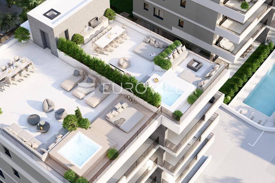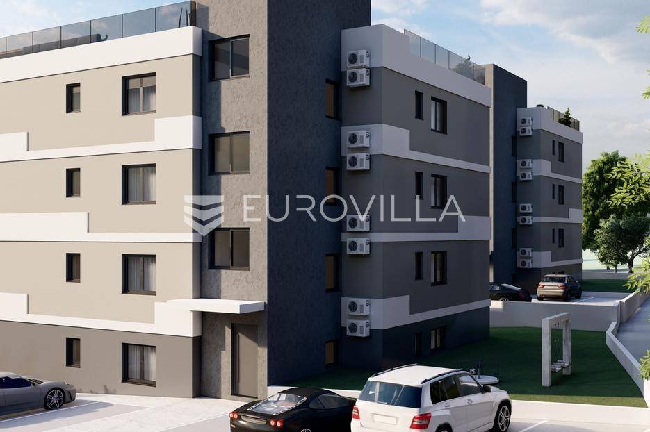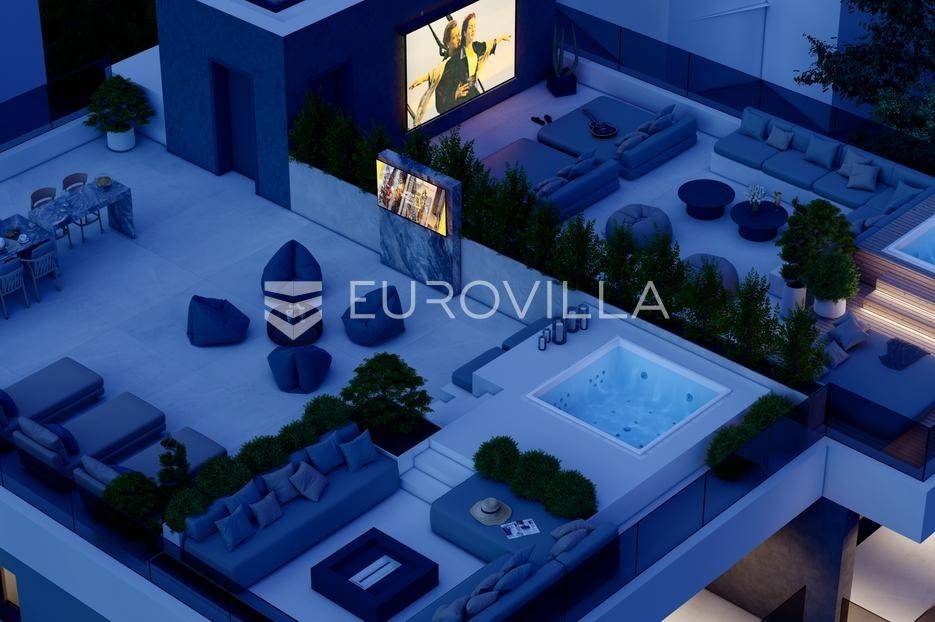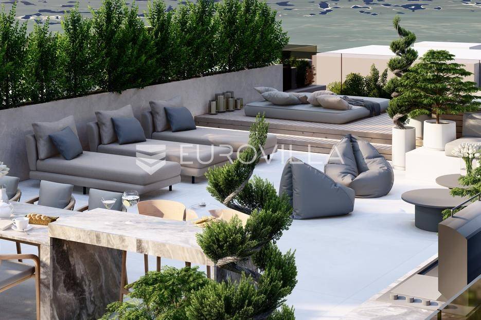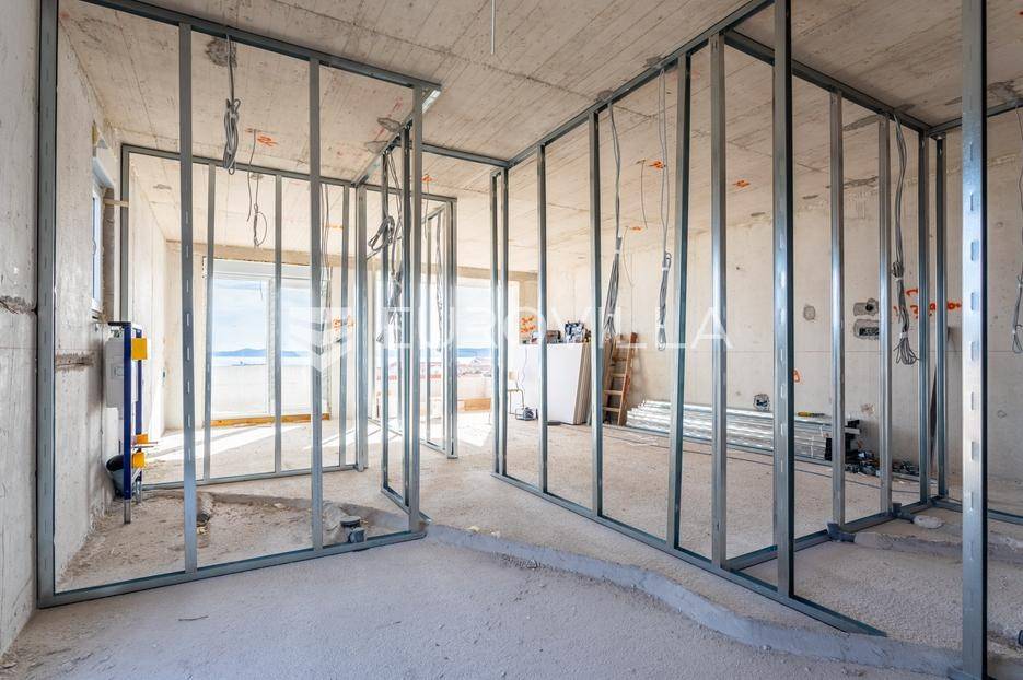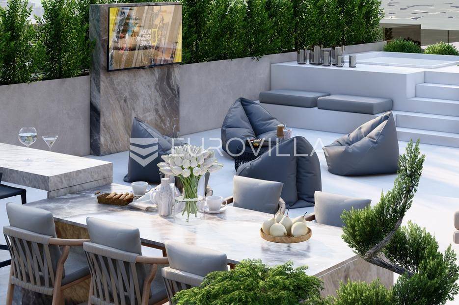 Čiovo, Okrug Gornji, dvosoban penthouse položen na trećoj etaži modernog objekta s bazenom i liftom, u izgradnji.Stan S8 se sastoji od ulaznog hodnika, dvije spavaće sobe, dvije kupaonice, kuhinje s blagovaonicom i dnevnog boravka s izlazom na natkriveni balkon površine 14, 63 m2. Pripada mu krovna terasa površine 70, 4 m2 s predivnim pogledom na more. Površina zatvorenog stambenog dijela iznosi 55 m2, a ukupna 86 m2.U cijenu su uračunata dva vanjska nenatkrivena parkirna mjesta.Objekt je smještan na južnoj strani Čiova, na odličnoj lokaciji, jako blizu uređenih plaža, restorana, trgovina,….Za sva ostala pitanja, stojim na raspolaganju.... Više na eurovilla.hr, ID: 641617