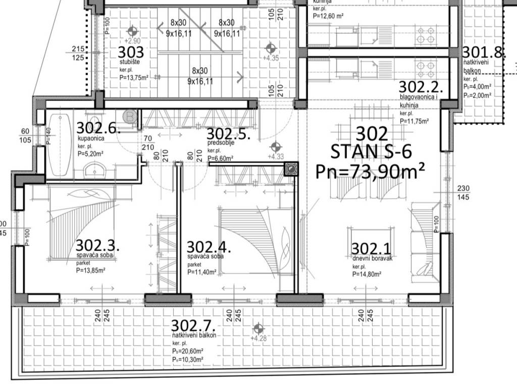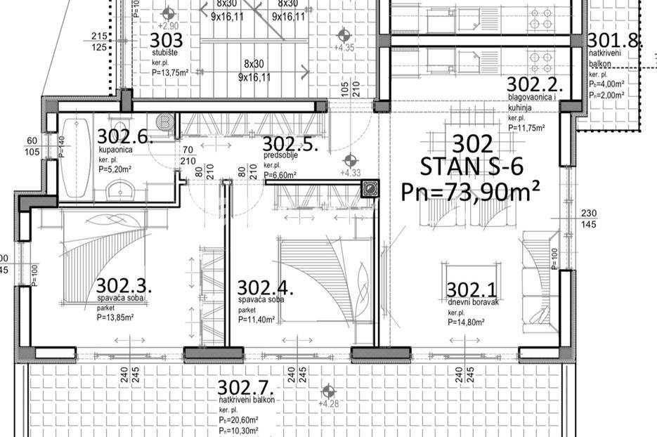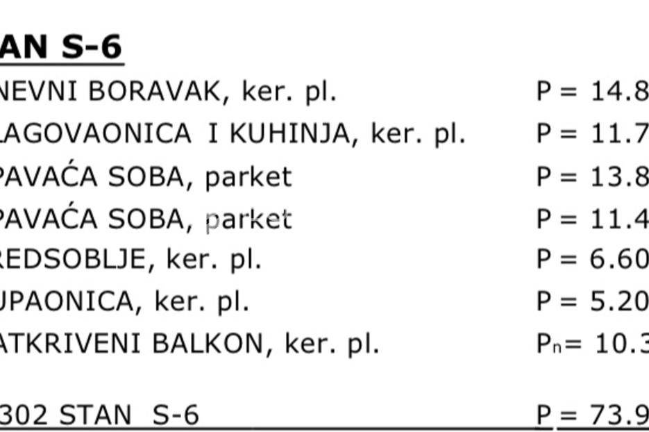 Predstavljamo Vam projekt novogradnje u jednom od najpopularnijih i najrazvijenijih naselja na otoku Pagu, Mandrama. Na odličnoj lokaciji, svega 350 m od mora gradi se kvalitetna stambena zgrada s ukupno 8 stambenih jedinica. U samom okruženju se također nalaze i svi ostali sadržaji koji su potrebni za kvalitetan život ili odmor.STAN S6 - 76,90m2 - PRVI KATStan S6 se nalazi na 1. katu zgrade te je ukupne neto korisne površine 76,90m2. Sastoji se od predsoblja (6,60m2), otvorenog prostora kuhinje, blagovaonice i dnevnog boravka (26,55m2), dvije spavaće sobe (13,85m2 i 11,40m2), potpuno opremljene kupaonice (5,20m2) te prostranog natkrivenog balkona (20,60m2). Stanu uz to pripada i jedno vanjsko parkirno mjesto (12,50m2).Predviđeno useljenje : 05/2026Od opreme i materijala valja izdvojit:Toplinsku izolaciju od stiropora debljine 10cm Multi split sustav klimatizacije u svim spavaćim sobama i dnevnom boravku Protuprovalna i protupožarna vrataVrhunska unutarnja i vanjska stolarija Podloge od keramike i parketaI još mnogo toga..Za više informacija i dogovor oko razgledavanja, obratite nam se s povjerenjem.... Više na eurovilla.hr, ID: 651641