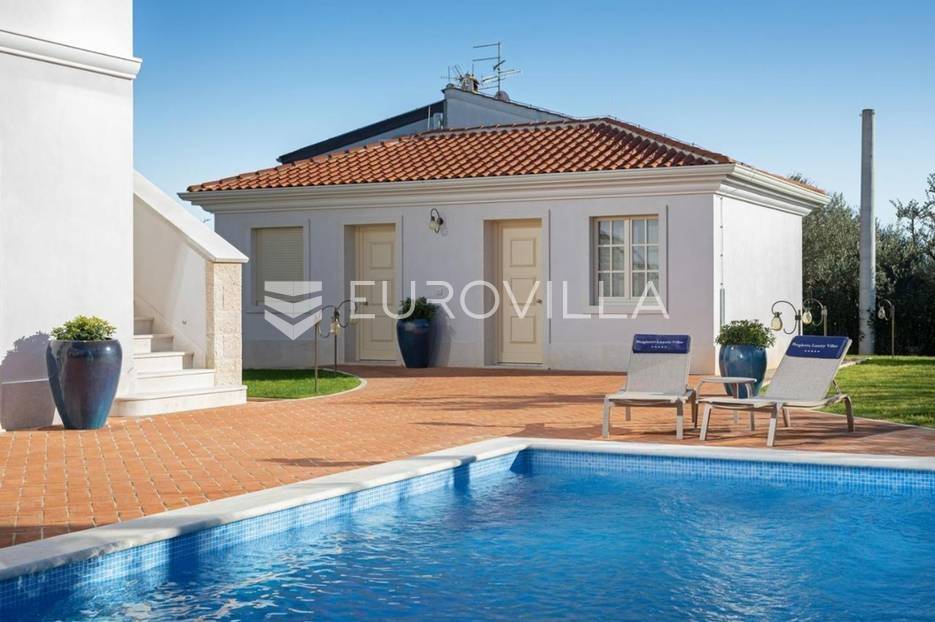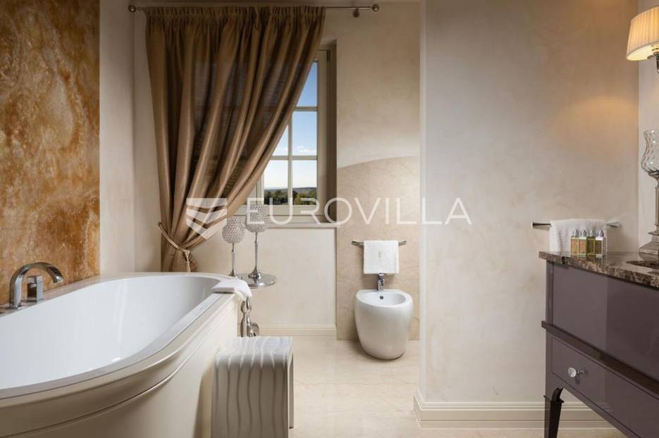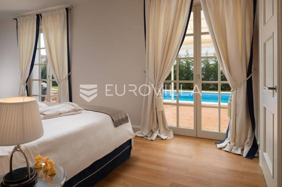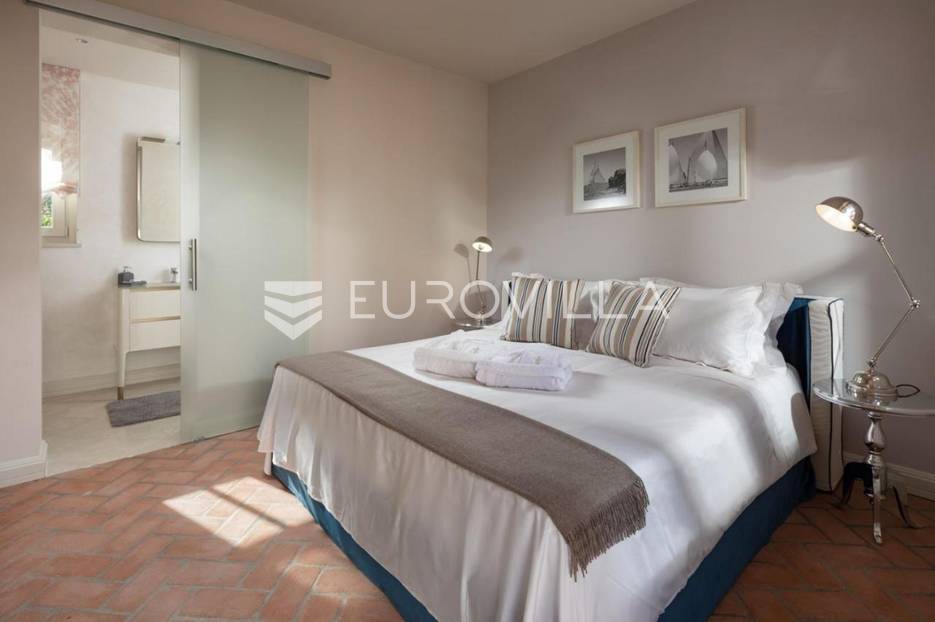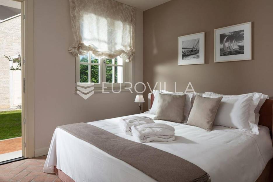 Istra, Vabriga- na sjeverozapadnom djelu Istarskog poluotoka, zelenoj oazi prepunoj uređenih zelenih površina, maslinovih stabala, najboljih konoba, vina smjestila se i ova prekrasna vila 338 m2, na besprijekorno uređenoj i održavanoj okućnici, bezvremenske ljepote, pomno građena, a njen interijer ostavlja bez daha.Ulazom u vilu dominiraju velika ulazna vrata, visoki stropovi koji je čine još raskošnijom i svjetlijom.Prizemlje se sastoji od velikog svijetlog dnevnog boravka, kuhinjskog dijela velikog stola za ručavanje. Iz dnevnog boravka pruža se pogled na dvorišni dio i bazen 33 m2 velik. Natkrivena vanjska terasa ima svoj roštilj za okupljanja i druženja u privatnosti zelene oaze.U prizemlju je smještena jedna spavaća soba sa svojom kupaonicom i direktnim izlazom na bazen. Bezvremenskim kamenim stubištem penje se na prvi kat gdje su se smjestile još dvije prekrasno uređene spavaće sobe, svaka sa svojom kupaonicom, od kojih jedna ima izlaz na balkon i pogled na more.Sav je interijer vile pomno rađen od unikatnih dijelova, te ona kao takva predstavlja pravo remek djelo.U vili dominira kamen koji u sinergiji s pomno osmišljenim interijerom cijelom prostoru pruža jednu toplu notu. U produžetku vile nalaze se dvije spavaće sobe, svaka sa svojom kupaonom i zasebnim ulazom ukupne veličine 50 m2.Udaljenost vile od obližnjih plaža je svega 2000 m, ako vas put vodi u Rovinj, udaljen je 48 km, a do Poreča i njegovih laguna potrebno Vam je 11 km.Za dodatne informacije o ovoj prekrasnoj vili stojimo Vam na raspolaganju.... Više na eurovilla.hr, ID: 655449