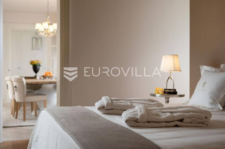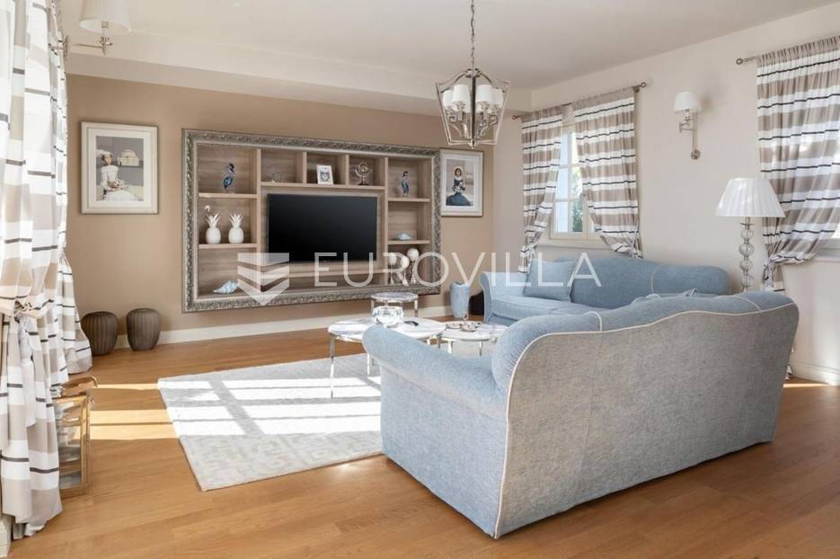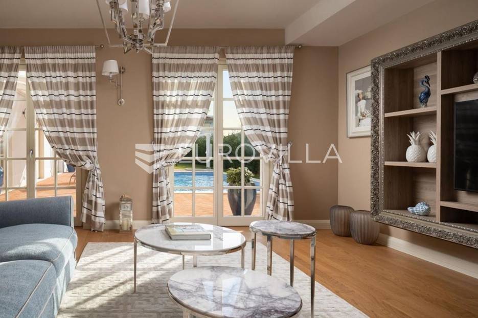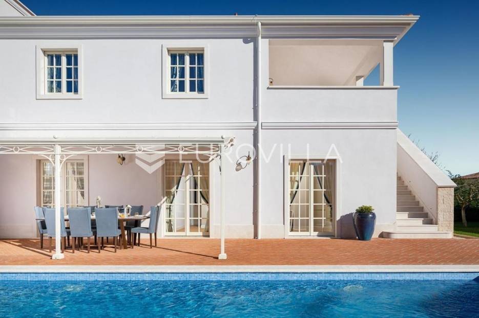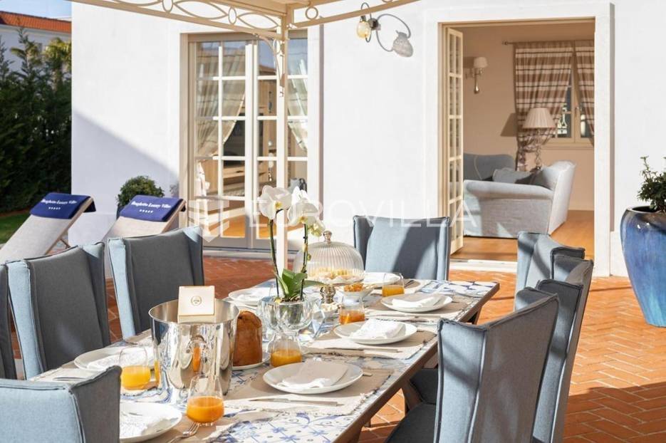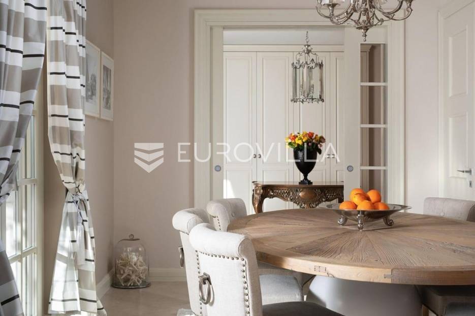 Istra, Vabriga- na sjeverozapadnom djelu Istarskog poluotoka, zelenoj oazi prepunoj uređenih zelenih površina, maslinovih stabala, najboljih konoba, vina smjestila se i ova prekrasna vila 338 m2, na besprijekorno uređenoj i održavanoj okućnici, bezvremenske ljepote, pomno građena, a njen interijer ostavlja bez daha.Ulazom u vilu dominiraju velika ulazna vrata, visoki stropovi koji je čine još raskošnijom i svjetlijom.Prizemlje se sastoji od velikog svijetlog dnevnog boravka, kuhinjskog dijela velikog stola za ručavanje. Iz dnevnog boravka pruža se pogled na dvorišni dio i bazen 33 m2 velik. Natkrivena vanjska terasa ima svoj roštilj za okupljanja i druženja u privatnosti zelene oaze.U prizemlju je smještena jedna spavaća soba sa svojom kupaonicom i direktnim izlazom na bazen. Bezvremenskim kamenim stubištem penje se na prvi kat gdje su se smjestile još dvije prekrasno uređene spavaće sobe, svaka sa svojom kupaonicom, od kojih jedna ima izlaz na balkon i pogled na more.Sav je interijer vile pomno rađen od unikatnih dijelova, te ona kao takva predstavlja pravo remek djelo.U vili dominira kamen koji u sinergiji s pomno osmišljenim interijerom cijelom prostoru pruža jednu toplu notu. U produžetku vile nalaze se dvije spavaće sobe, svaka sa svojom kupaonom i zasebnim ulazom ukupne veličine 50 m2.Udaljenost vile od obližnjih plaža je svega 2000 m, ako vas put vodi u Rovinj, udaljen je 48 km, a do Poreča i njegovih laguna potrebno Vam je 11 km.Za dodatne informacije o ovoj prekrasnoj vili stojimo Vam na raspolaganju.... Više na eurovilla.hr, ID: 655449