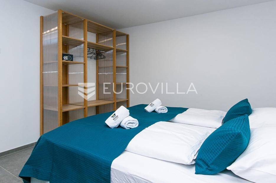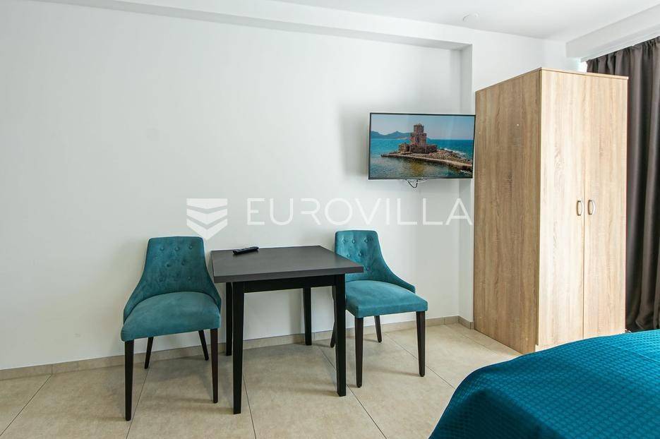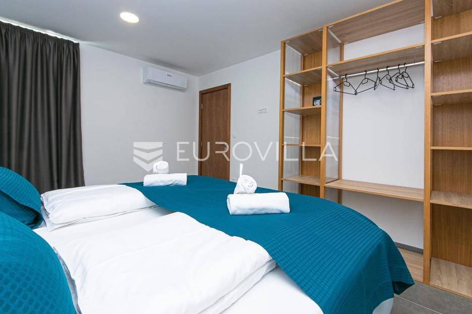 Brela, moderan I namješten stan - novogradnja I prvi red do mora. Stan površine 94 m2 smješten je na drugom katu stambene zgrade s prekrasnim pogledom. Sastoji se od dvije spavaće sobe, dvije kupaonice, kuhinje s blagovaonicom I dnevnim boravkom s izlazom na prostranu loggiu.Stan se prodaje potpuno opremljen I namješten te su u cijeni I dva parkirna mjesta. U susjednoj zgradi je moguće korištenje dodatnih sadržaja - bazena, teretane I saune. Također idealna nekretnina za investiciju uz već uhodan posao property menagmenta cijelog objekta.Brela su prvo mjesto kojem se približavate na Makarskoj rivijeri putujući obalom iz Splita. To je ljupki grad s dugim šljunčanim plažama i borovom šumom, a mirniji je od Makarske. Iz tih razloga, to je popularno odmaralište (posebno za obitelji I za one koji traže opuštajući bijeg.Više informacija na upit.... Više na eurovilla.hr, ID: 663869