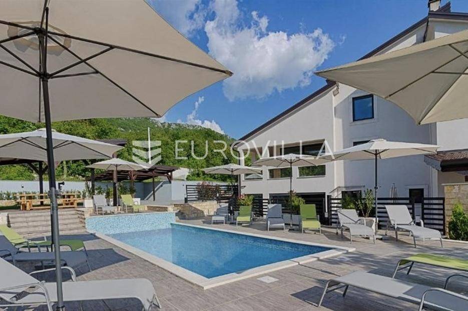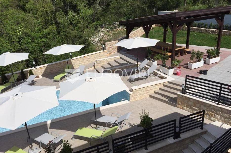 Luksuzna vila smještena u mirnom okruženju u blizini Novog Vinodolskog, idealna za one koji traže kombinaciju privatnosti, vrhunske udobnosti i elegancije.Vila se prostire na 400 m² stambenog prostora i smještena je na prostranoj parceli od 1.263 m², što osigurava dovoljno prostora za uživanje, opuštanje i privatnost.Ova elegantna nekretnina ističe se suvremenom arhitekturom i pažljivo odabranim materijalima, a opremljena je unutarnjim i vanjskim bazenom, što omogućuje korištenje tijekom cijele godine.Unutrašnjost je moderno i kvalitetno namještena, s prostranim dnevnim boravkom koji se skladno povezuje s kuhinjom i blagovaonicom. Velike staklene stijene pružaju obilje prirodnog svjetla i izravan pristup terasi i uređenoj okućnici.Spavaće sobe su komforne, svaka s vlastitom kupaonicom, čime se dodatno ističe osjećaj luksuza i udobnosti. Lokacija vile je izuzetno mirna, okružena zelenilom, a ipak nadomak mora i svih potrebnih sadržaja.Vila je idealna kao obiteljska kuća za odmor ili kao investicija za luksuzni turistički najam. Prodaje se potpuno opremljena i spremna za useljenje, bez dodatnih ulaganja.Za sve dodatne informacije i organizaciju razgleda, slobodno nas kontaktirajte.... Više na eurovilla.hr, ID: 678117