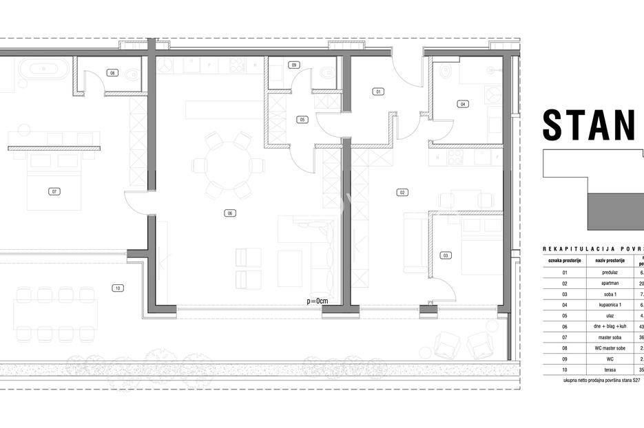 Slavonski Brod, J.J. Strossmayera, luksuzni četverosoban penthouse na trećem katu, 147,92 m2Stan se nalazi u stambenoj zgradi s 29 stanova s liftom, s vanjskim i garažnim parkirnim mjestima.Ovaj generacijski/obiteljski stan se sastoji od predulaza, posebnog apartmana s dnevnim boravkom, kuhinjom, spavaćom sobom i kupaonicom, te glavnog dijela stana s vlastitim ulazom, prostranim dnevnim boravkom s kuhinjom i blagovaonicom, WC-om i glavnom spavaćom sobom s vlastitom kupaonicom. Duž cijelog stana prostire se terasa.Opremljen je PVC stolarijom s troslojnim staklima i roletama na struju, protuprovalnim i protupožarnim vratima, klima uređajima u svim sobama, dizalicom topline s podnim grijanjem u cijelom stanu i termostatima u svim sobama. Kupaonica opremljena tuš kadom sa staklenom stijenom i kanalicom, te ugradbenim WC-om s kotlićem.Cijena stana iznosi 2.800 €/m2 s uključenim PDV-om. Mogućnost biranja između vanjskih i garažnih parkirnih mjesta, koji nisu uključeni u cijenu, te mogućnost kupovine spremišta u podrumu zgrade.U blizini zgrade su svi bitni sadržaji poput, trgovine 10m od zgrade, osnovne škole, vrtića...Za više informacija stojimo na raspolaganju.... Više na eurovilla.hr, ID: 688703