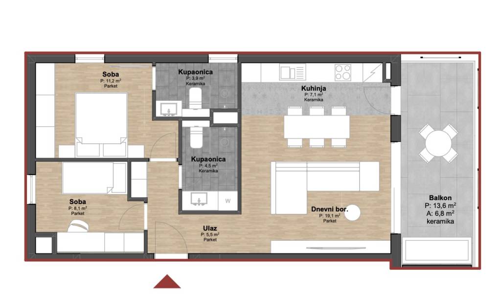 Split - Podstrana | Stambena zgrada s devet modernih stambenih jedinica - drugi red od mora.Na prodaju je atraktivna stambena zgrada s ukupno devet stambenih jedinica, smještena na iznimno poželjnoj lokaciji u drugom redu od mora u Podstrani.Projekt je osmišljen i bit će izveden prema najvišim građevinskim standardima, uz pažljivo birane materijale i suvremena tehnička rješenja koja osiguravaju udobnost, sigurnost i visoku kvalitetu stanovanja.Iznimna lokacija omogućuje da svaki stan i svaka etaža uživaju u otvorenom i trajno nesmetanom pogledu na more.B - S4 | Dvosoban stan na drugom katuStan se sastoji od ulaznog hodnika, dvije spavaće sobe ( od kojih jedna s pripadajućom kupaonicom ), kupaonice, kuhinje s blagovaonicom i dnevnog boravka. Stambena površina iznosi 56, 46 m².Dnevni boravak ima izlaz na natkriveni balkon površine 13, 64 m².Ukupna neto površina stana s garažnim mjestom iznosi 72, 28 m².U cijenu je uključeno jedno garažno parkirno mjesto, te postoji mogućnost kupnje dodatnog parkirnog garažnog mjesto po cijeni od 30 000 eura.Mikrolokacija je iznimna - svega nekoliko koraka do mora, uređenih plaža i nove šetnice koja povezuje cijelu Podstranu, kao i blizina svih potrebnih sadržaja (javni prijevoz, trgovine, restorani, kafići i dr.).Za sve dodatne informacije stojimo Vam na raspolaganju.... Više na eurovilla.hr, ID: 693217