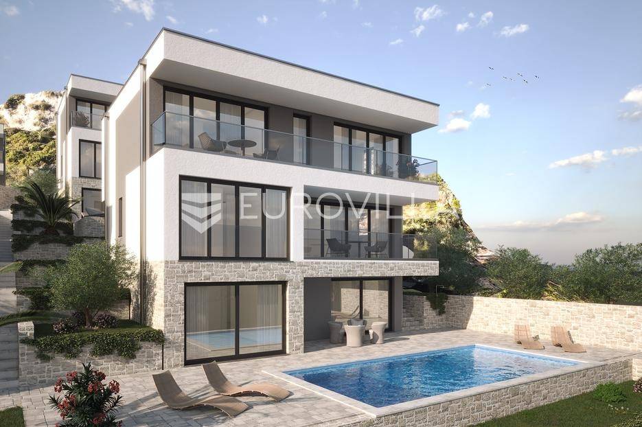 Pelješac, Orebić, moderne, luksuzne vile na parcelema veličine cca 450 m2 na tri etaže ukupno neto korisne površine 207 m2.Suteren veličine neto koisne površine 71.83 m2 a sastoji se od spremišta, fitness centra, natkrivene terase,kupaonice, saune, jaccuzi,tehničkog dijela.Prizemlje veličine neto korisne površine 73.92 m2 a sastoji se od ulaznog hodnika, wc, kupaonice, sobe s garderobnim dijelom, natkrivenom terasom, dnevnog boravka s kuhinjom, kuhinja i stubišni dio.Prvi kat veličine neto korisne površine 62.14 m2 a sastoji se od pretsoblja, kupaonice, 2 garderobna dijela, dvije sobe, balkona, kupaonice.Svaka villa posjeduje grijani bazen, s privatnim parkirnim mjestom.Projekt započinje krajem 2026 godine.Iz vile se pruža prekrasan pogled na more i obalu te otok Korčulu. Objekt će biti okružen privatnim vrtom s palmama i mediteranskim biljem koje jamči apsolutnu privatnost! Dodatna prednost svake od ovih nekretnina bit će dalmatinski kameni roštilj. Kuća će biti izgrađena od najkvalitetnijih materijala, a vila će biti spojena na inteligentni sustav kojim se može upravljati svim modernim mobilnim telefonima.Za sve upite stojimo na raspolaganju.... Više na eurovilla.hr, ID: 701287