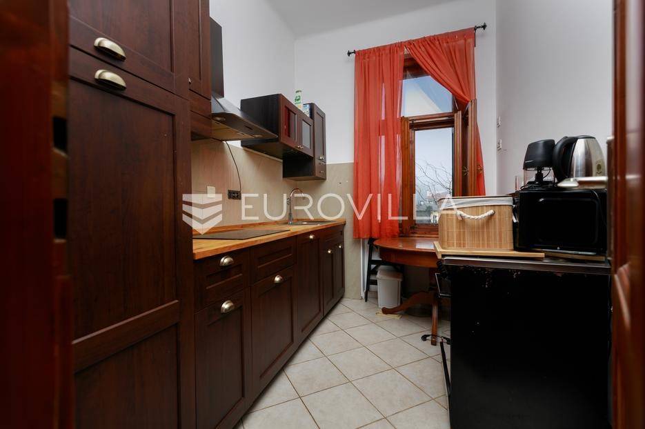 U prekrasnoj povijesnoj vili u Opatiji, smještenoj svega nekoliko minuta lagane šetnje od samog centra grada, tržnice, pošte i mora, nalazi se ovaj iznimno ugodan i svijetao stan ukupne površine 90 m². Smješten na prvom katu vile, stan pruža autentičan opatijski ugođaj, prepoznatljiv po visokim stropovima, velikim prozorskim otvorima i otvorenom panoramskom pogledu na Kvarnerski zaljev.Stan je orijentiran na jug, što mu osigurava obilje prirodnog svjetla tijekom cijelog dana. Sastoji se od dvije prostrane spavaće sobe, kuhinje, blagovaonice povezane s dnevnim boravkom – prostora koji je izvorno bio treća spavaća soba i koji se po potrebi može vratiti u prvobitno stanje, kupaonice, ostave odnosno garderobe, hodnika te balkona s pogledom na more.Nekretnini dodatnu vrijednost daje pomoćni objekt u vlasništvu, drvarnica odnosno spremište površine 16 m², kao i dio okućnice ukupne površine oko 75 m², korišten temeljem međuvlasničkog ugovora. Okućnica je uređena i nudi sjenicu, prostor za sjedenje i roštilj, idealno za boravak na otvorenom u mirnom, zelenom okruženju.Stan je u potpunosti adaptiran 2017. godine, uključujući instalacije, žbuku, stolariju i kuhinju, uz posebno očuvane i obnovljene originalne hrastove parkete koji dodatno naglašavaju karakter prostora. Grijanje je riješeno putem električnih mramornih ploča i klima uređaja, uz mogućnost klasičnog grijanja na drva zahvaljujući funkcionalnoj kaljevoj peći.Ova nekretnina predstavlja izvrsnu priliku za one koji traže kvalitetan stan s karakterom, pogledom na more i neposrednom blizinom svih sadržaja, u jednoj od najpoželjnijih rezidencijalnih zona Opatije.Za dodatne informacije slobodno nas kontaktirajte!... Više na eurovilla.hr, ID: 724189
