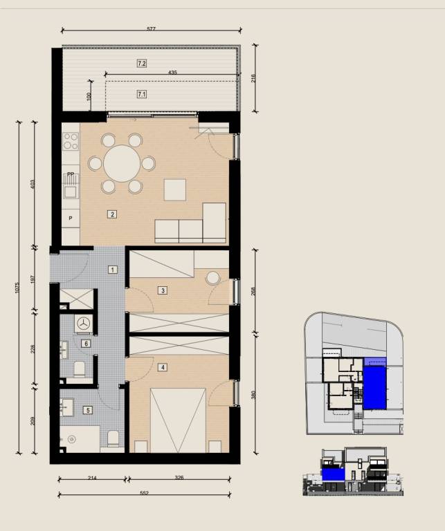 BRAČ - SUPETAR | Ekskluzivna prodaja stambeno - poslovne zgrade - pet modernih stambenih jedinica i dva poslovna prostoraNa prodaju je atraktivna stambeno - poslovna zgrada s ukupno pet stambenih jedinica i dva poslovna prostora, smještena na iznimno poželjnoj lokaciji u Supetru na otoku Braču.Projekt je osmišljen i biti će izveden prema najvišim građevinskim standardima, uz pažljivo birane materijale i suvremena tehnička rješenja koja osiguravaju udobnost, sigurnost i kvalitetu življenja.Investitor, koji je na ovoj lokaciji već realizirao nekoliko predivnih vila s bazenom, planira ovim zgradama zaokružiti projekt stvaranja manjeg, luksuznog i potpuno uređenog naselja.Arhitektonsko rješenje objedinjuje moderan dizajn i mediteranski šarm, skladno uklopljen u prirodni krajolik i duh otoka.Planirani završetak radova i moguće useljenje - kraj 2027. godine.A4 - STAN 3- dvosoban stan položen na prvom katu. Sastoji se od ulaznog hodnika, kupaonice, WC-a, dvije spavaće sobe, kuhinje s blagovaonicom, te dnevnog boravka stambene površine 56, 21 m2.Dnevni prostor ima direktan izlaz na dijelomično natkriven balkon ukupne površine 12, 56 m2.Ukupna neto površina iznosi 60, 44 m2.U izraženu cijenu je uključeno jedno vanjsko nenatkriveno parkirno mjesto.Nekretnina se nalazi na atraktivnoj lokaciji u Supetru, svega nekoliko minuta vožnje od trajekta i u neposrednoj blizini mora. Odlično je povezana s kopnom redovnim trajektnim linijama, što omogućuje jednostavan pristup tijekom cijele godine, dok istovremeno nudi autentičan otočki način života u mirnom i ugodnom okruženju.Za sve ostale informacije stojimo Vam na raspolaganju.... Više na eurovilla.hr, ID: 729098
