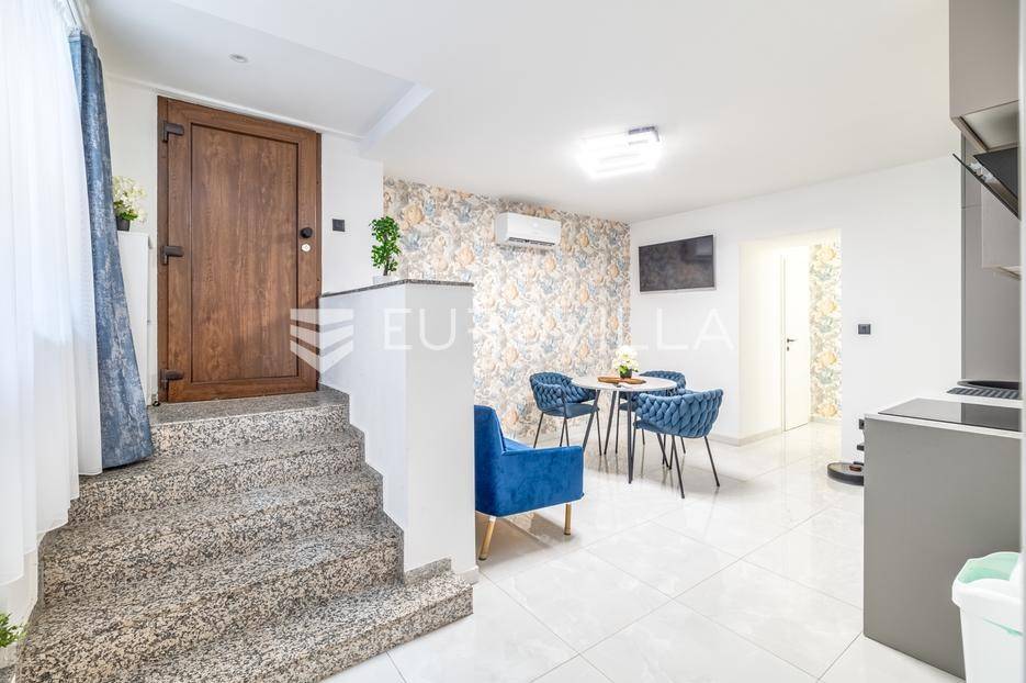 Zagreb, Kumičićeva, prodaje se potpuno adaptirani, lijepi trosobni stan od 76 m2 u suterenu jedne od najreprezentativnijih zgrada u Donjem Gradu.Stan se sastoji od dnevnog boravka s kuhinjom, dvije prostrane spavaće sobe, kupaonice, gostinjskog toaleta, vešeraja, ostave i hodnika. Iz stana je izlaz na popločeni svjetlarnik koji se može koristiti kao privatna terasa budući da je to jedini prilaz. Stan se prodaje potpuno namješten, u kupaonici je podno grijanje, a svaka soba ima vlastitu klimu Bosch.Nekretnina, osim stambenog, ima investicijski potencijal budući da se koristila za turistički najam sa izuzetno visokim ocjenama. Lokacija je izvanredna, udaljena svega nekoliko stotina metra do glavnog trga te 200 metara do glavnog kolodvora.Za ostala pitanja stojimo Vam na raspolaganju.... Više na eurovilla.hr, ID: 765502
