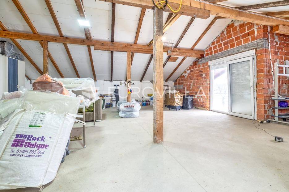 Velika Gorica, Lukavec - samostojeća kuća s više stambenih jedinica i velikim dvorištem, na mirnoj lokaciji s izvrsnim potencijalom.Nekretnina se sastoji od glavne kuće te pomoćnog objekta s više funkcionalnih cjelina, smještenih na prostranoj parceli površine 1.084 m², s uređenim dvorištem, zelenilom i sjenicom s prostorom za druženje i roštilj.Glavna kuća sastoji se od dvije etaže:Prva etaža (78,30 m² - potpuno uređena i useljiva) Sastoji se od dnevnog boravka s kuhinjom i blagovaonicom, dvije spavaće sobe, hodnika, ostave, kupaonice s WC-om te natkrivene i nenatkrivene terase. Ukupna neto korisna površina je 87,56 m². Prostor je funkcionalno raspoređen i spreman za korištenje. Adaptiran 2010.Druga etaža (78,30 m² - poseban ulaz, roh-bau)Na drugu etažu pristupa se vanjskim stubištem. Etaža je u roh-bau stanju te pruža mogućnost uređenja dodatnog stana s terasom, u potpunosti prema željama budućeg vlasnika. Ukupna neto korisna površina je 85,86 m².Pomoćni objekt / zasebna stambeno-gospodarska cjelinaOdvojeni objekt nudi iznimnu fleksibilnost i dodatnu vrijednost nekretnini:Garaža i radionica -ukupne površine 51,46 m²Uređeni studio apartman (25,39 m²) - sastoji se od dnevnog boravka s kuhinjom i blagovaonicom, kupaonice s WC-om i spremišta, s potpuno odvojenim ulazom. Uređen 2023. godine,Dodatno spremište površine 12,80 m², također s posebnim ulazomPotkrovna etaža iznad cijelog objekta (90 m², roh-bau) - prostor velike površine koji se može urediti kao dodatni stan, rekreacijski prostor, teretana, skladište ili prema vlastitim potrebamaLokacijaNekretnina se nalazi u mirnom i ugodnom okruženju Lukavca, idealnom za one koji traže privatnost i mir, a istovremeno žele odličnu prometnu povezanost. U blizini su obilaznica, Zračna luka Franjo Tuđman i grad Zagreb, dok su osnovni sadržaji dostupni u kratkoj vožnji.Prednostiviše odvojenih stambenih jedinicaidealno za višečlanu obitelj, investiciju ili kombinaciju stanovanja i najmaveliki vrt i dvorištemirna lokacija uz brzu povezanost s gradomOstale informacije dostupne su na upit.... Više na eurovilla.hr, ID: 767916
