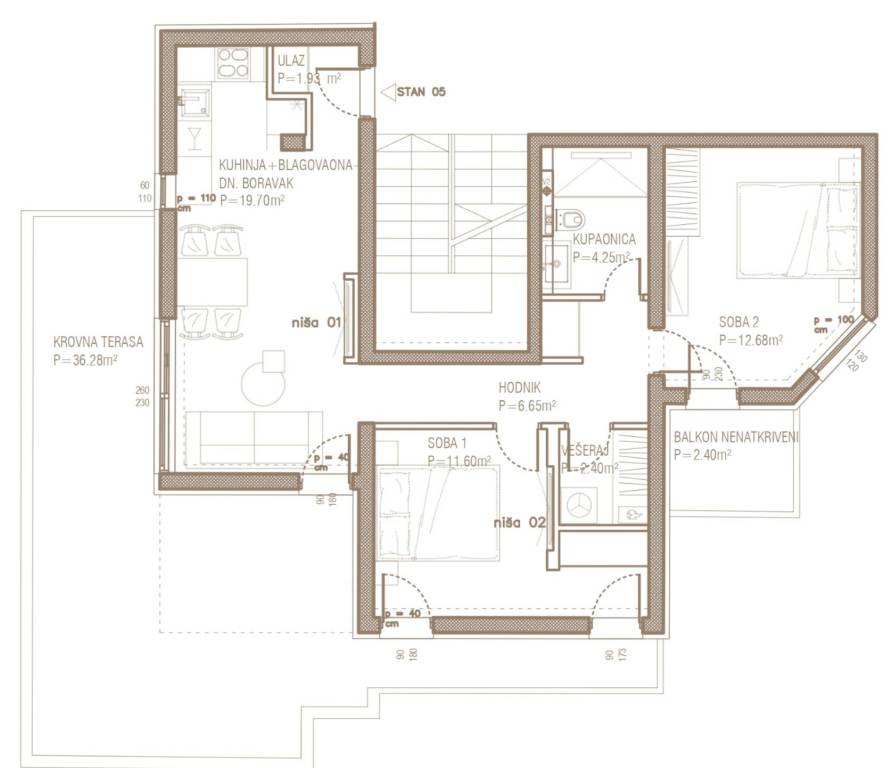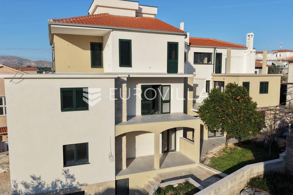 ČIOVO - OKRUG GORNJI | Ekskluzivna prodaja moderne novogradnje, šest stambenih jedinica s pogedom na moreNa prodaju je atraktivna stambena zgrada s ukupno šest stambenih jedinica, smještena na iznimno poželjnoj lokaciji u Okrugu Gornjem na otoku Čiovu.Projekt je osmišljen i izveden prema najvišim građevinskim standardima, uz poseban naglasak na korištenje visokokvalitetnih materijala. Sva keramika i sanitarije nabavljene su u Credo centru, dok je arhitektonski ured DWG izradio projekt stolarije zasebno za svaku stambenu jedinicu.Objekt je u završnoj fazi izvođenja, a planirani završetak radova i useljenje predviđeni su do ljeta 2026. godine.STAN 5- dvosoban stan na drugom katu. Sastoji se od sastoji od hodnika, praonice, kupaonice, dvije spavaće sobe, kuhinje s blagovaonicom i dnevnog boravka, stambene površine 56,99 m2.Stanu pripada prostrana terasa s predivnim pogledom na more površine 36, 28 m2 , balkon površine 2,4 m2, te mogućnost korištenja zajedničke krovne terase.Jedno vanjsko nenatkriveno parkirno mjesto je uključeno u cijenu.Ukupna neto površina iznosi 68,23 m2.Izvrsna lokacija, pristup s glavne prometnice, a samo nekoliko minuta hoda udaljena od uređenih plaža, kafića, restorana,...Za sve ostale informacije stojimo Vam na raspolaganju.... Više na eurovilla.hr, ID: 770806