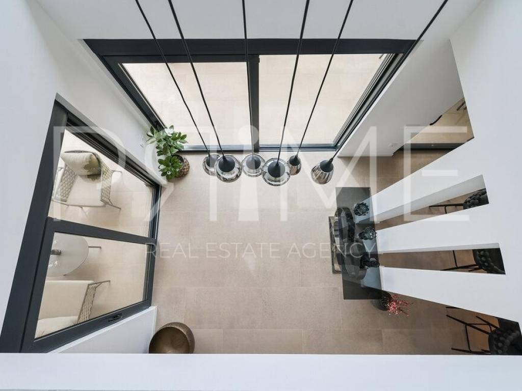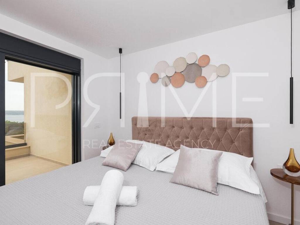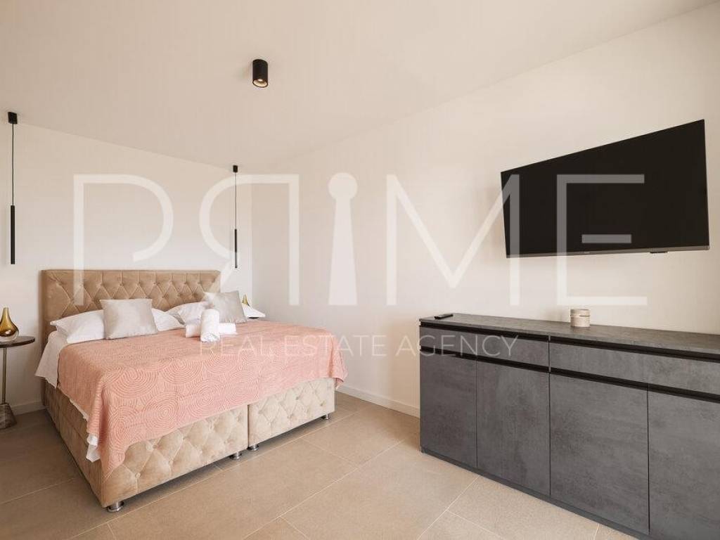 U prizemlju se nalazi prostrani open space dnevni prostor koji objedinjuje modernu kuhinju, blagovaonicu i dnevni boravak s izravnim izlazom na terasu i sunčalište uz bazen. Tu su još spavaća soba, elegantna kupaonica, spremište i praonica, što osigurava maksimalnu praktičnost svakodnevnog života. Na katu su smještene tri komforne spavaće sobe, svaka s vlastitom kupaonicom i privatnom terasom s koje se pruža prekrasan pogled na more – savršeno mjesto za jutarnju kavu ili večernje opuštanje uz zalazak sunca.