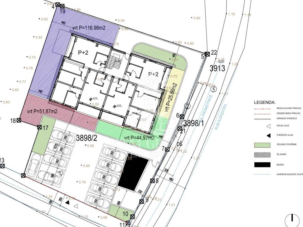 Kompleks se sastoji od tri moderne zgrade građene prema najvišim standardima gradnje, uključujući konstrukciju dimenzioniranu za 9. seizmičku zonu, što jamči sigurnost i kvalitetu. U dvorištu zgrade nalazi se zajednički bazen namijenjen svim stanarima – savršeno mjesto za opuštanje i druženje.