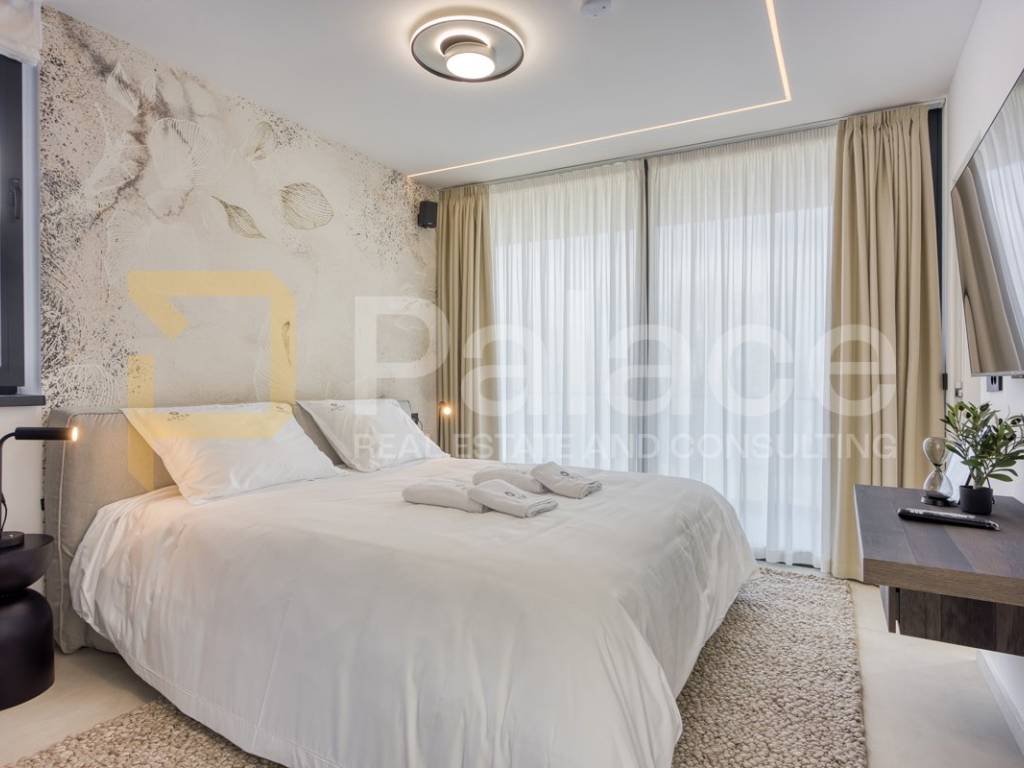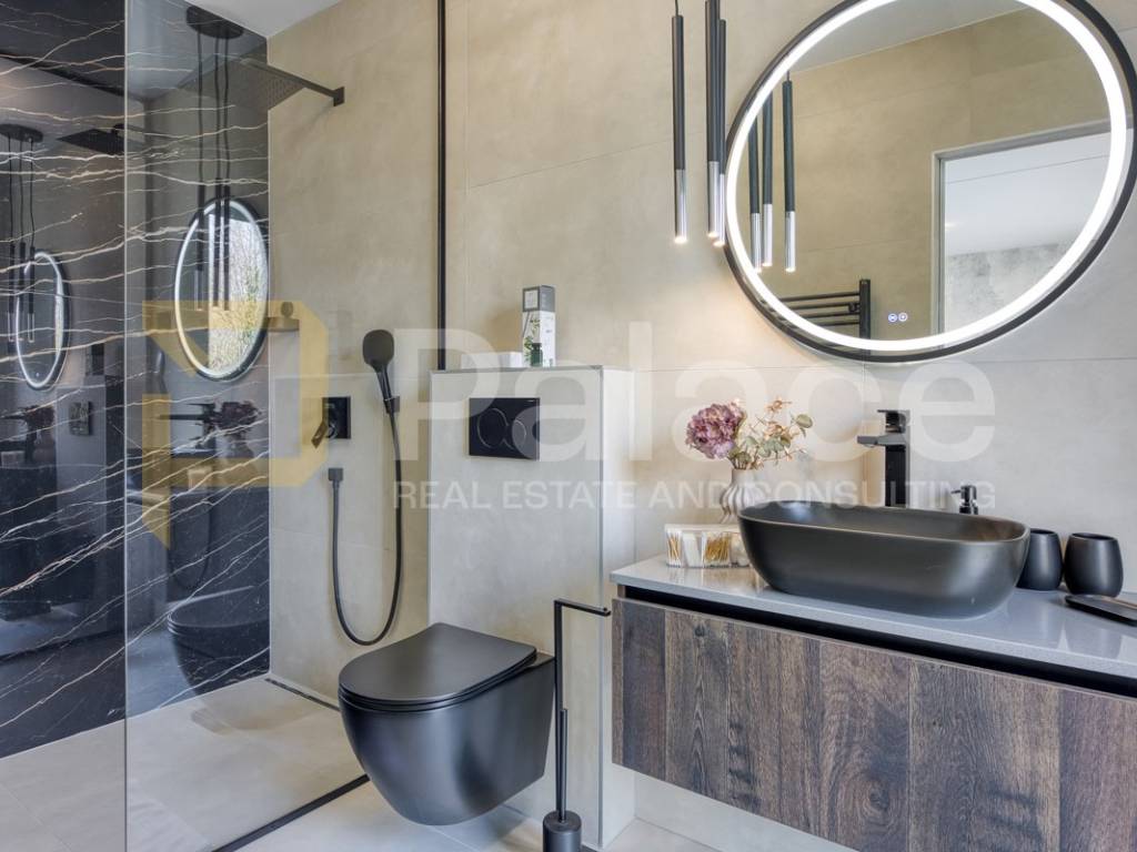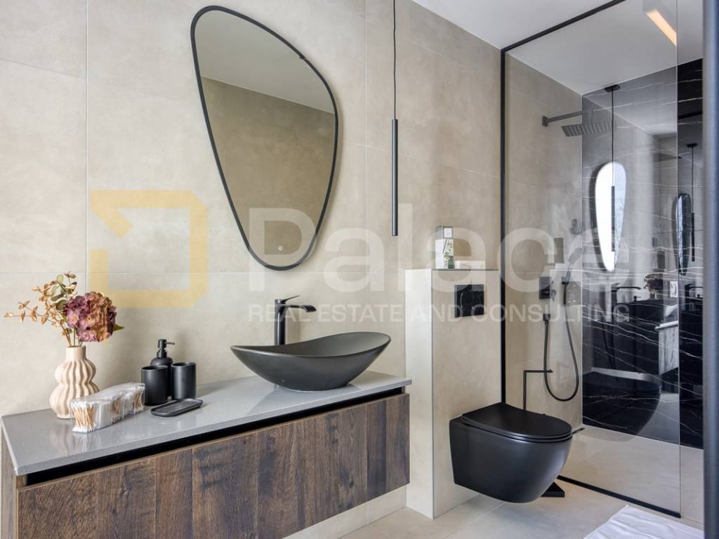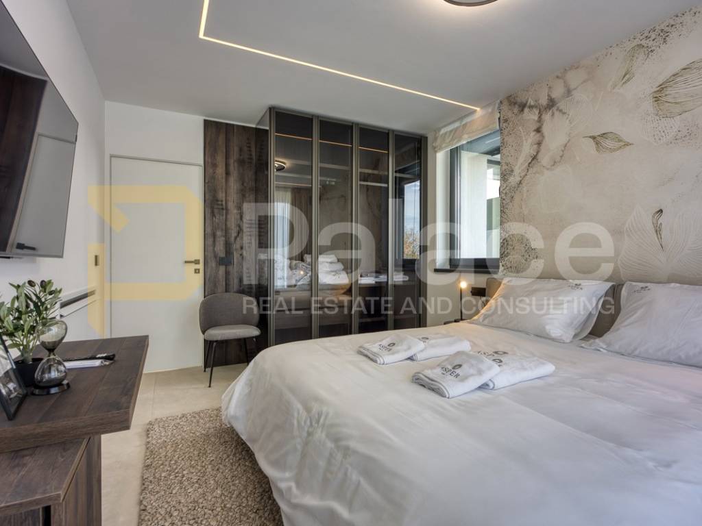 Na katu se nalaze četiri prostrane spavaće sobe, svaka sa svojom moderno uređenom kupaonicom, čime je osigurana maksimalna udobnost i privatnost za obitelj i goste. Svaki detalj interijera pažljivo je biran kako bi se postigla harmonija luksuza i funkcionalnosti.