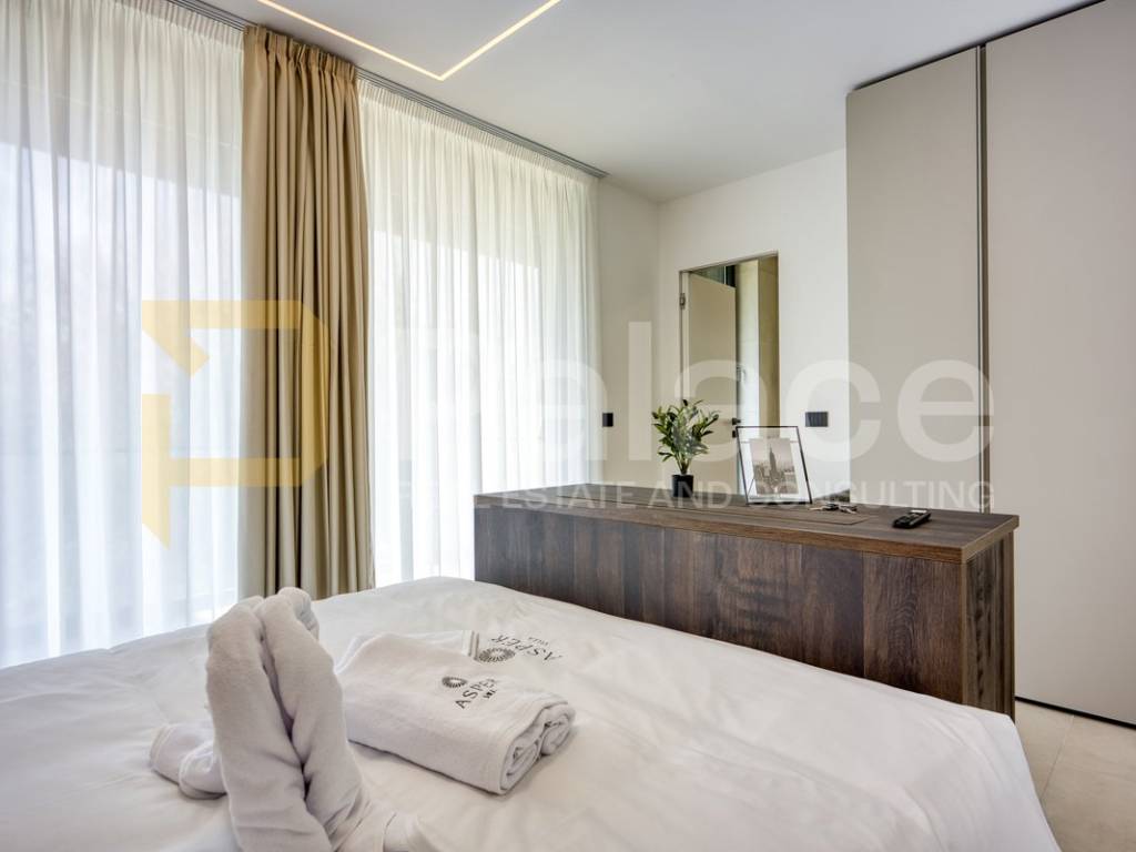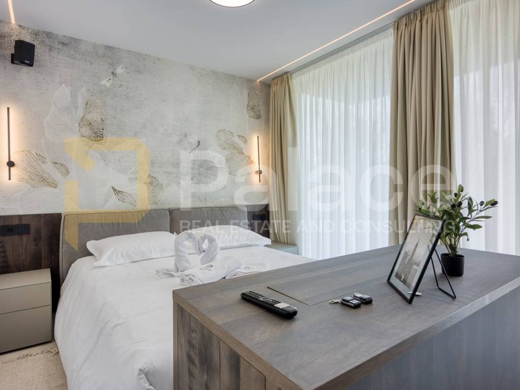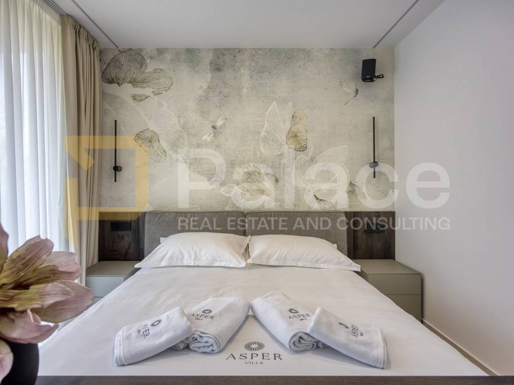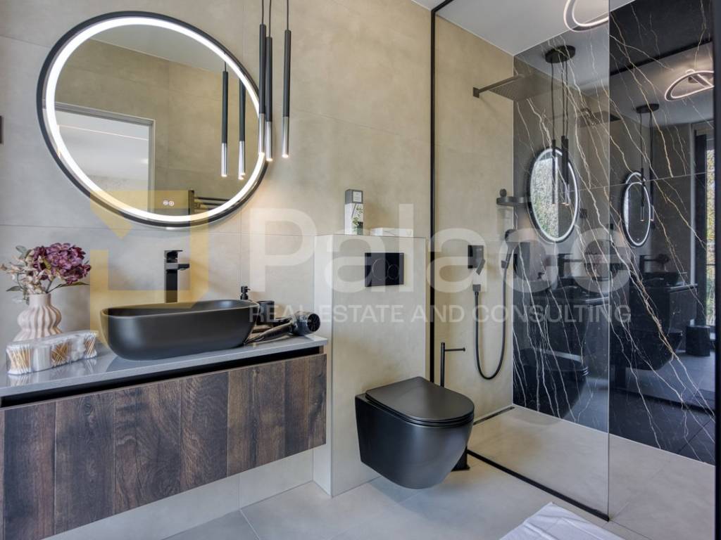 Na katu se nalaze četiri prostrane spavaće sobe, svaka sa svojom moderno uređenom kupaonicom, čime je osigurana maksimalna udobnost i privatnost za obitelj i goste. Svaki detalj interijera pažljivo je biran kako bi se postigla harmonija luksuza i funkcionalnosti.