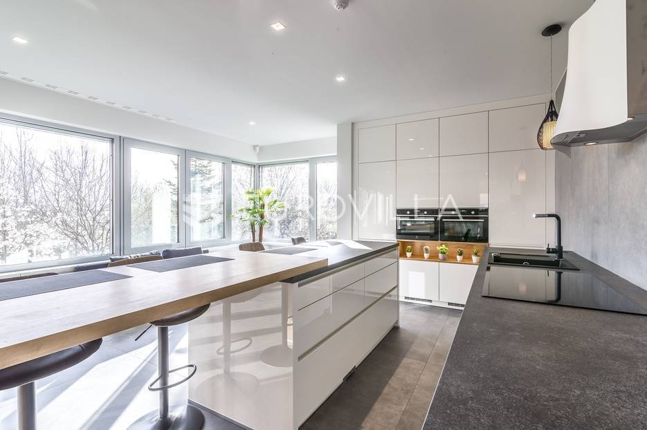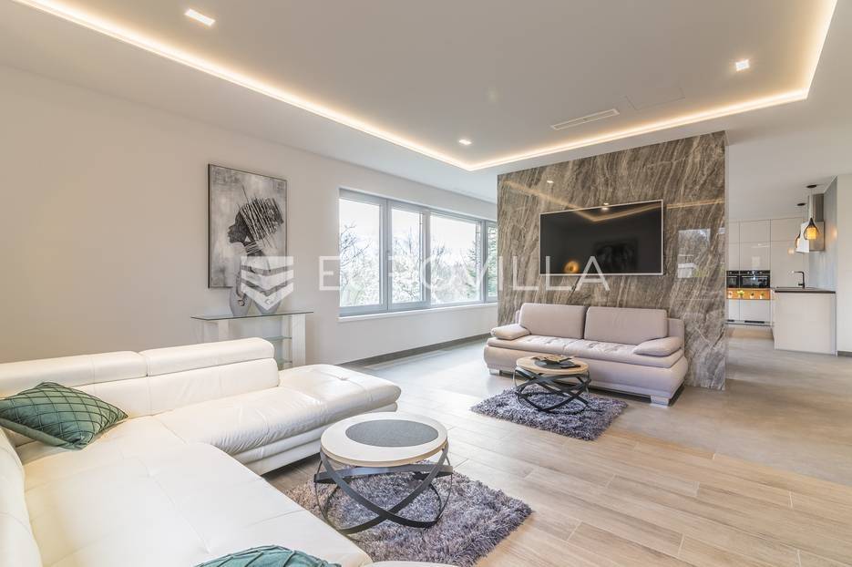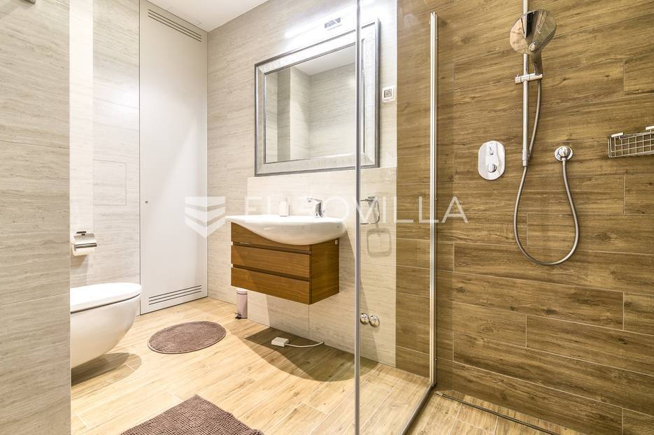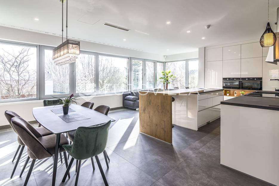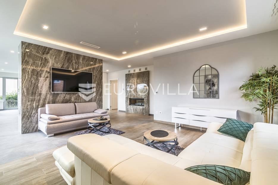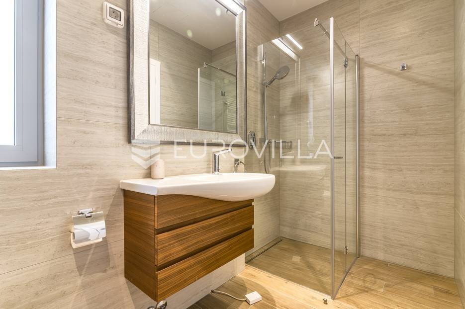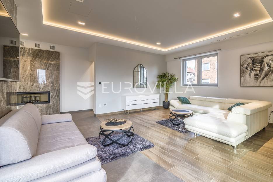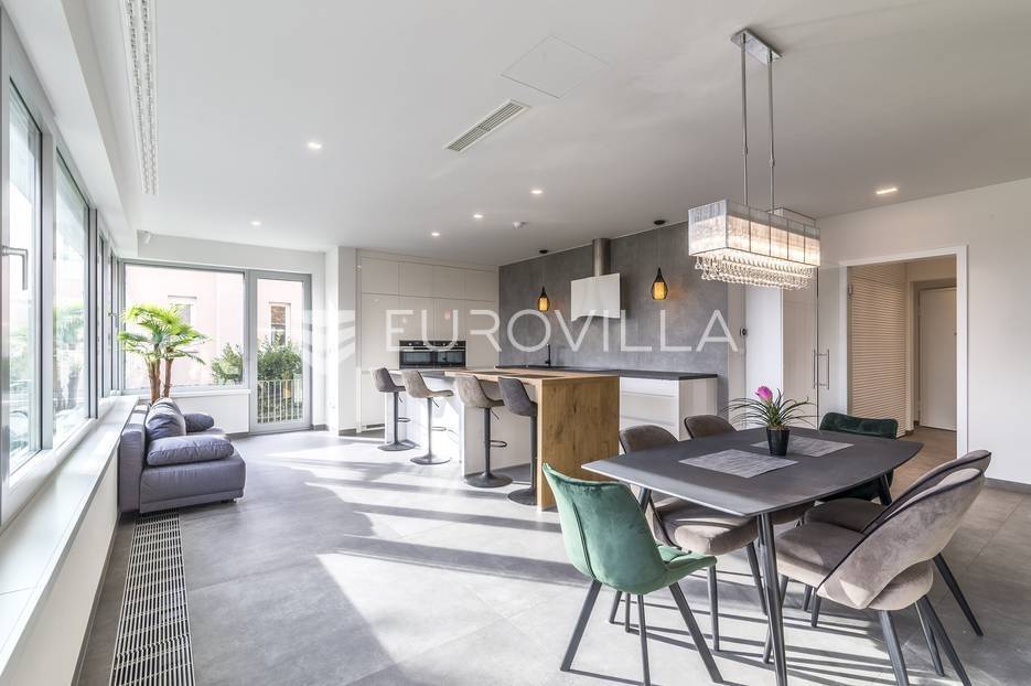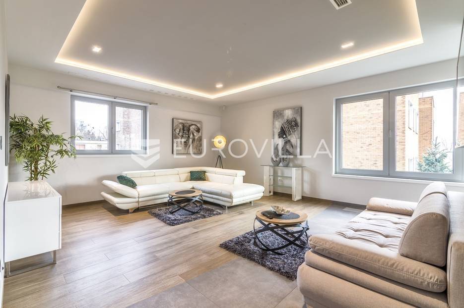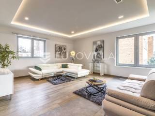 Šalata, prekrasno, luksuzno, novoizgrađeno naselje na odličnoj mirnoj lokaciji, 5 min od tramvaja, sa panoramskim pogledom na grad.Iznajmljuje se peterosoban luksuzan stan u visokom prizemlju sastoji se od ogromnog dnevnog boravka s kuhinjom i blagovaonicom te izlazom u prekrasan vrt površine 350m2, master spavaće sobe s kupaonicom, tri spavaće sobe, kupaonice, wc-a, hodnika, terase te dva parkirna mjesta. Zatvorene površine 168 m2, ukupno obračunski cca. 230 m2.Luksuzno opremljen i namješten. Novi namještaj i oprema. Na raspolaganju stanu teretana. Pametna kuća, klimatizirane sve prostorije, kamin, vrhunska keramika, podno grijanje, centralni usisivač...... Više na eurovilla.hr, ID: 144289