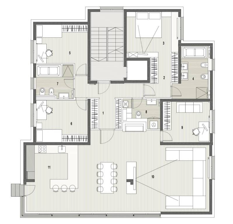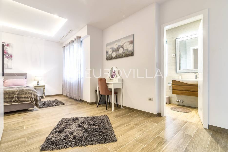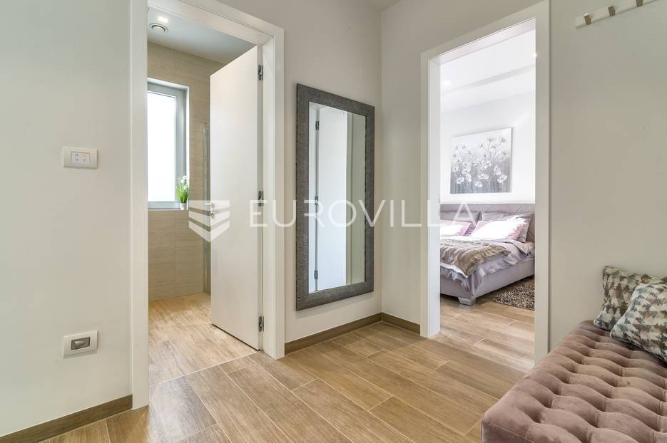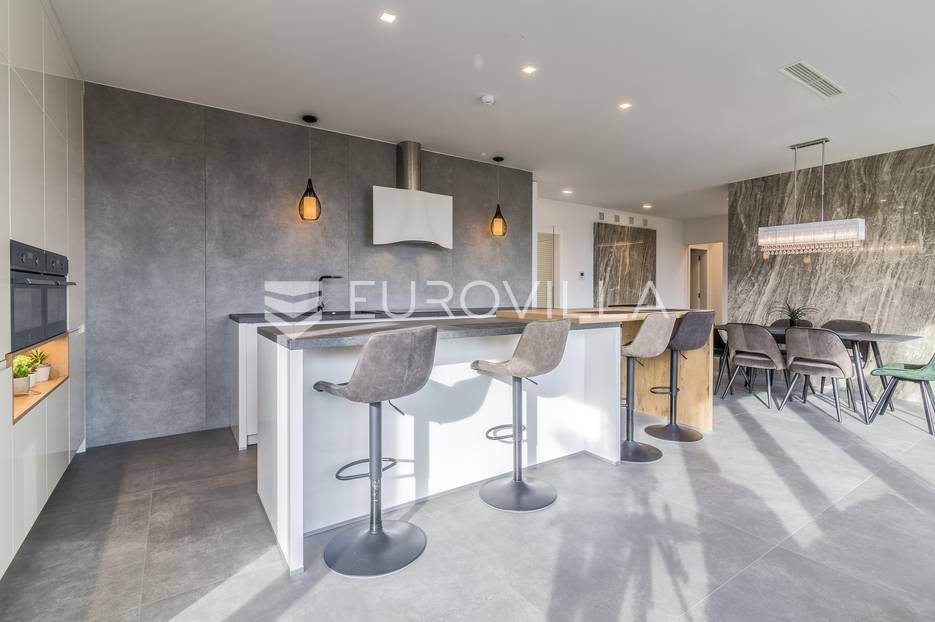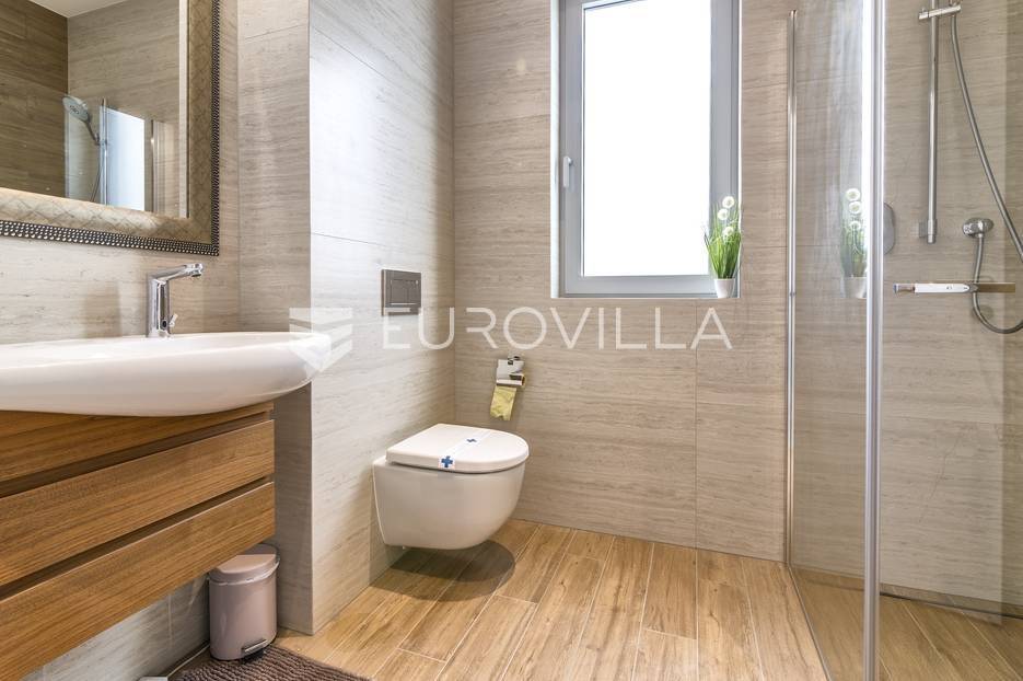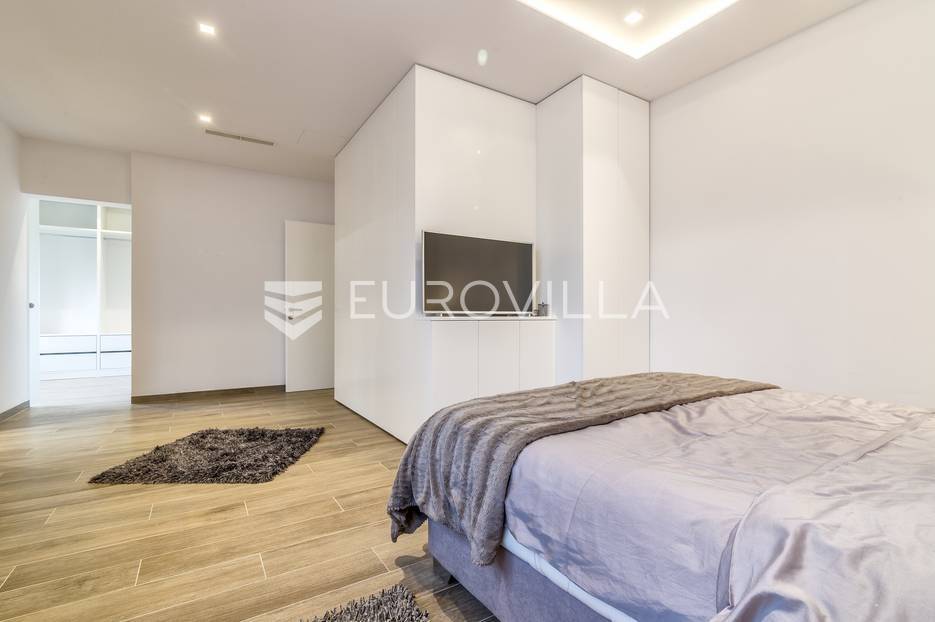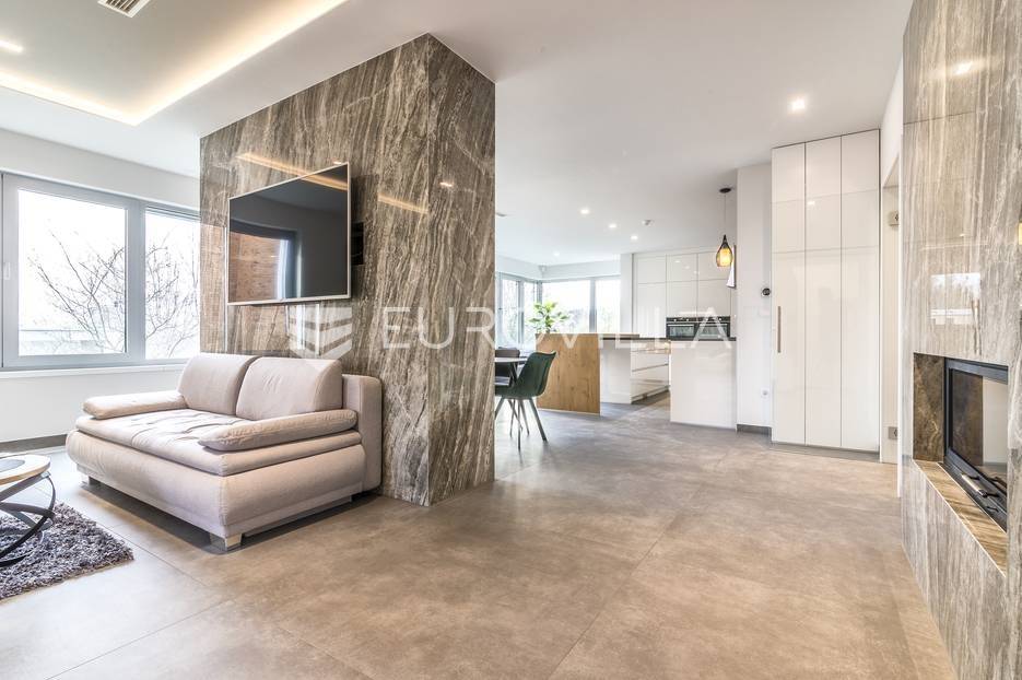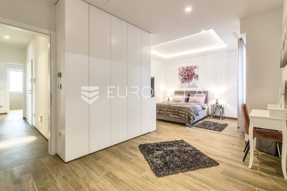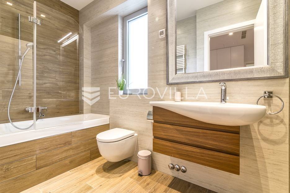 Šalata, prekrasno, luksuzno, novoizgrađeno naselje na odličnoj mirnoj lokaciji, 5 min od tramvaja, sa panoramskim pogledom na grad.Iznajmljuje se peterosoban luksuzan stan u visokom prizemlju sastoji se od ogromnog dnevnog boravka s kuhinjom i blagovaonicom te izlazom u prekrasan vrt površine 350m2, master spavaće sobe s kupaonicom, tri spavaće sobe, kupaonice, wc-a, hodnika, terase te dva parkirna mjesta. Zatvorene površine 168 m2, ukupno obračunski cca. 230 m2.Luksuzno opremljen i namješten. Novi namještaj i oprema. Na raspolaganju stanu teretana. Pametna kuća, klimatizirane sve prostorije, kamin, vrhunska keramika, podno grijanje, centralni usisivač...... Više na eurovilla.hr, ID: 144289