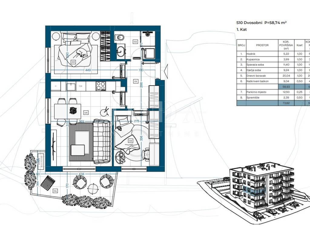Stan S10 je dvosoban stan od 58,11 m. Odličan raspored, balkon i viša pozicija u zgradi pružaju dodatnu vrijednost.