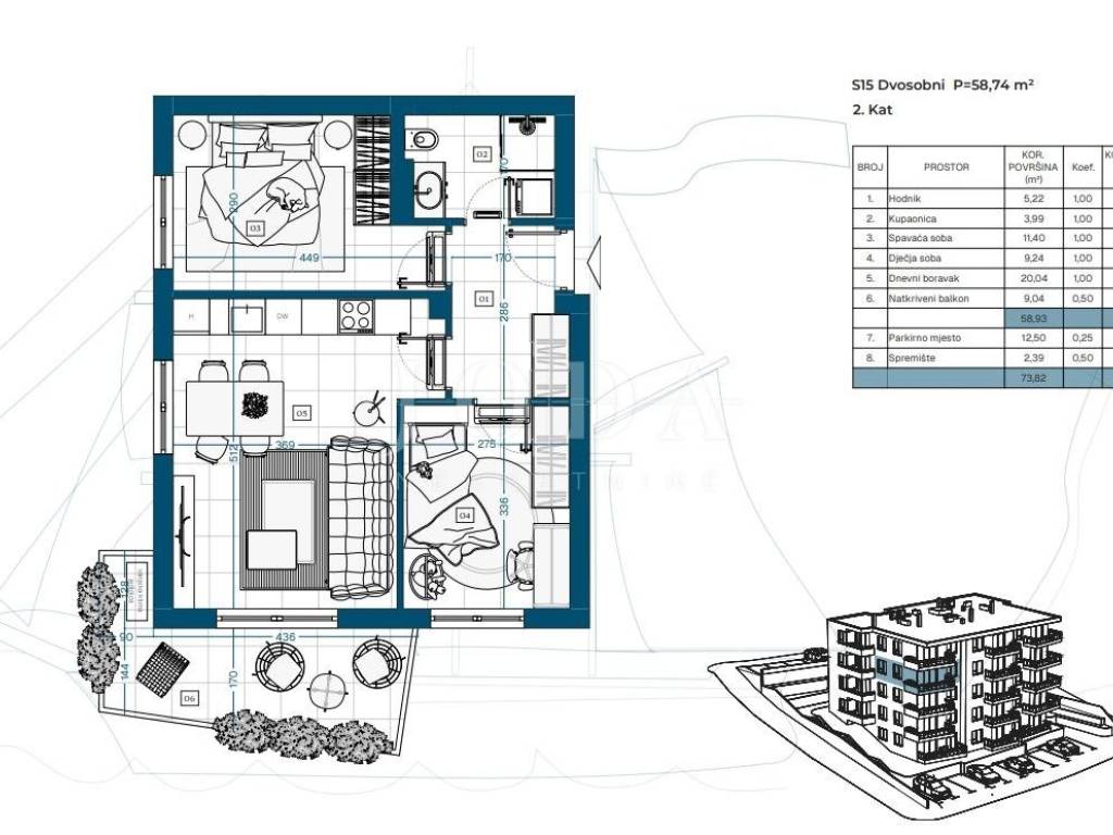Stan S15 ima 58,11 m i predstavlja odličan omjer kvadrature i funkcionalnosti.