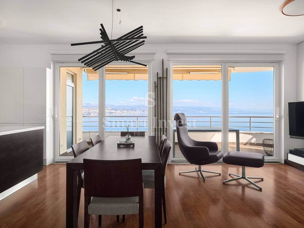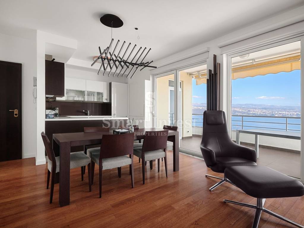 Ova vrhunska nekretnina nudi vam komforni životni prostor s visokokvalitetnom opremom te spektakularan pogled na more, a smještena je u neposrednoj blizini mora i plaža te svega desetak minuta šetnje udaljena od centra Opatije i svih potrebnih sadržaja, što čini vaš svakodnevni život izuzetno praktičnim i udobnim.