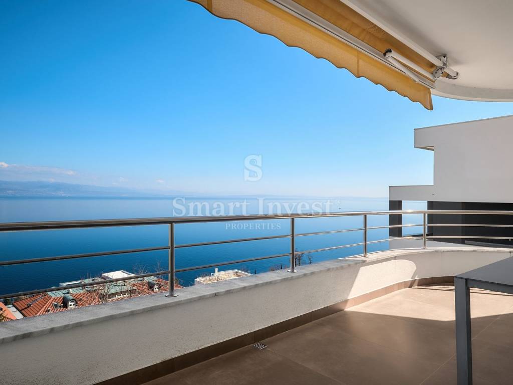 OPATIJA, na prodaju je luksuzan stan s prostranom terasom, balkonom i otvorenim pogledom na more, u zgradi novije gradnje s bazenom na atraktivnoj lokaciji u blizini mora i centra Opatije.