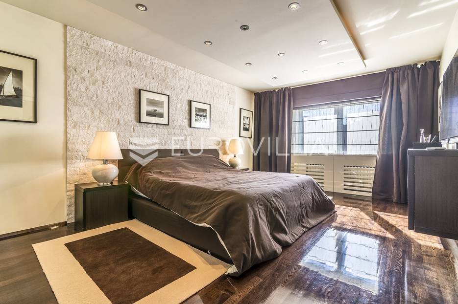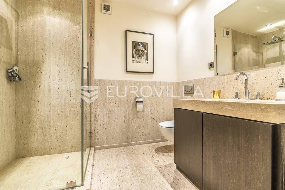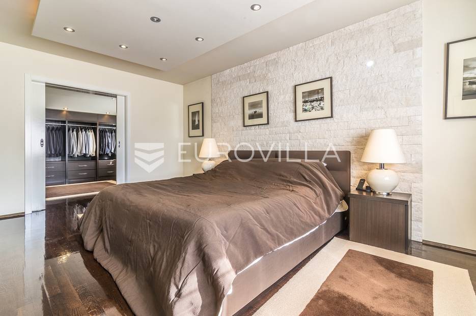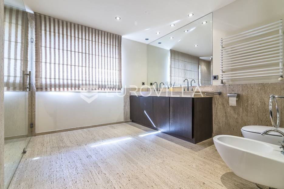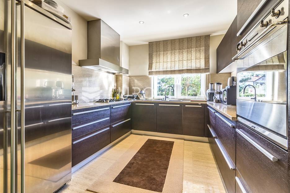 Zagreb, Gračani vila 450m2 smještena na zemljištu 680m2. Građena i projektirana prema najvišim standardima te opremljena dizajnerskim namještajem.Vila je koncipirana na 3 etaže povezane centralnim stubištem, s ukupnom neto stambenom površinom od 530 m2, s pripadajućom ograđenom parcelom od 1050 m2.Podrum: spremište, gym, vinski podrum, kotlovnica, vešerajPrizemlje: garaža za 2 automobila, wc, soba, kupaonica, prostran dnevni boravak, kuhinja, blagovaonicakupaonom s walk in tušem i kadomKat: master soba/wellness 54m2 sa jacuzziem, ogromnom kupaonicom, wc-om i saunom, radna soba, garderoba, spavaća soba s garderobom i loggia.Nalazi se na odličnoj lokaciji, samo nekoliko min automobilom do centra grada. U blizini Meridijan 16 centra i nove žičare za Sljeme. Na udaljenosti 500-800m nalaze se škole, vrtići i trgovine. Glavni gradski prijevoz autobusna stanica za Mihaljevac i Svetice na 200m, tramvajska stanica Gračansko dolje 500m.Ostale informacije na upit.... Više na eurovilla.hr, ID: 815793