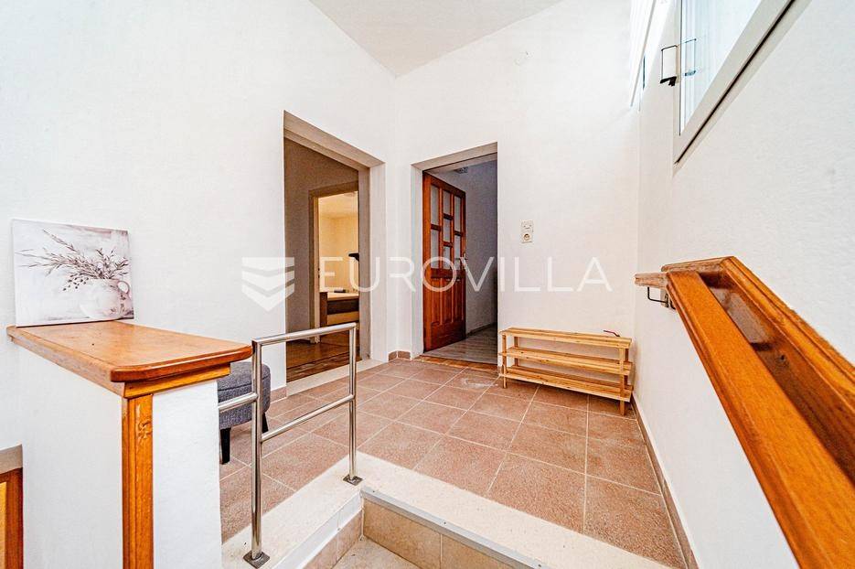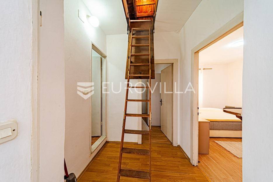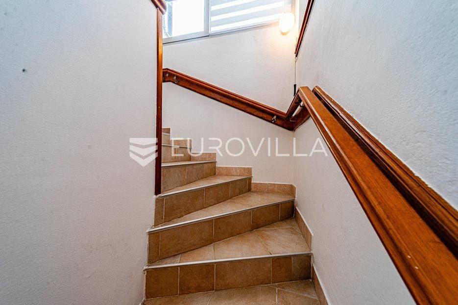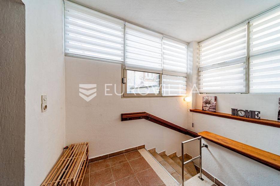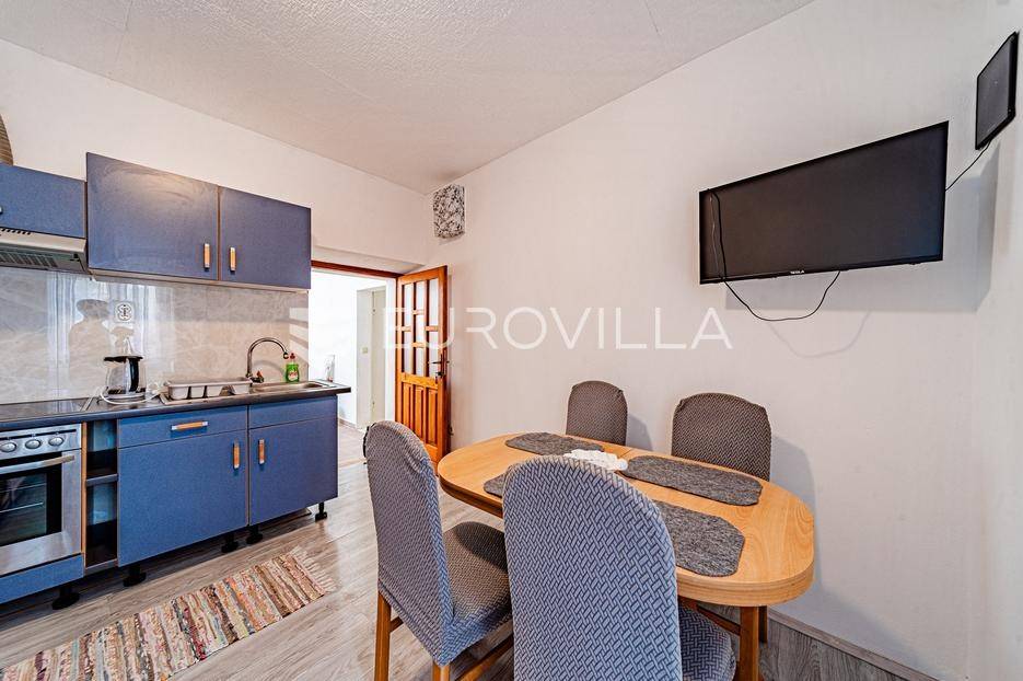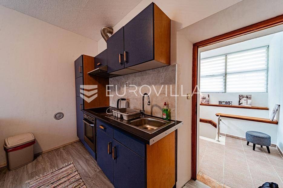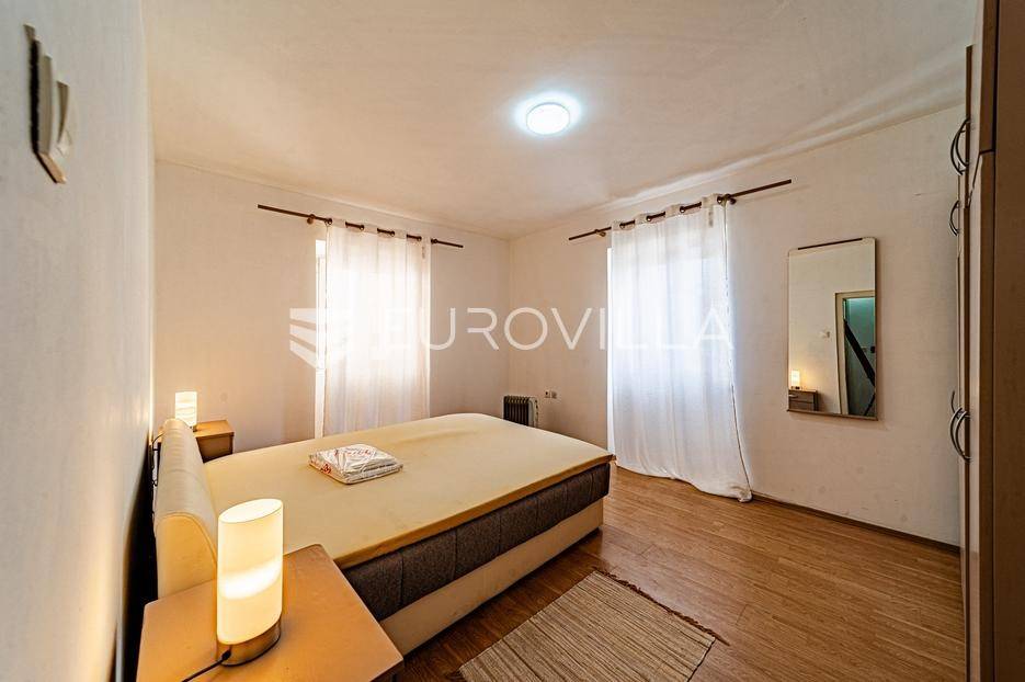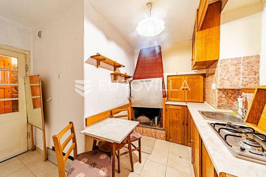 Kamena kuća u centru Vele Luke udaljena 30 metara od rive.Kuća je bruto površine 118 m2 i podijeljena je na dvije etaže. U prizemlju se nalazi hodnik koji vodi do stepeništa za drugu etažu, jedna soba, mala kuhinja s kominom i wc. Stepenice vode na prvi kat gdje se nalazi hodnik, kupaonica, dvije spavaće sobe te kuhinja povezana s dnevnim boravkom.U hodniku su sklopive stepenice koje vode u potkrovlje. Potkrovlje pokriva polovicu tlocrtne površine kuće a ostatak je terasa koja ima južnu orijentaciju.Sve prostorije su opremljene i kuća je priključena na vodovodnu i elektro mrežu. Nedaleko od kuće se nalaze restorani, trgovine, pošta i ljekarna. Kuća nema osigurano parkirno mjesto.Stojimo na raspolaganju za sve ostale informacije.... Više na eurovilla.hr, ID: 837171