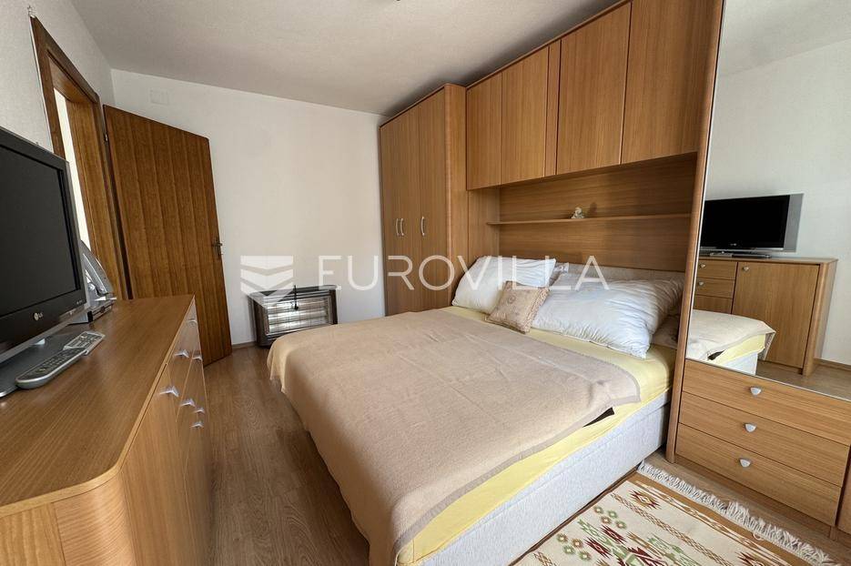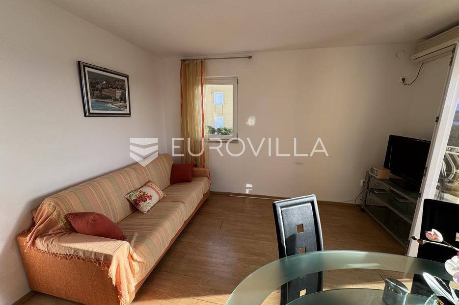 Jadranovo, odličan stan 47 m² smješten na prvom katu zgrade, s dva balkona, svega 380 metara od mora. Nalazi se u urednoj i održavanoj zgradi te ima pripadajuće parkirno mjesto i spremište u suterenu. Do plaže je svega 5 minuta lagane šetnje.Stan se sastoji od svijetlog dnevnog boravka s izlazom na prostran balkon koji nudi prekrasan, otvoreni pogled. Kuhinja je trenutno smještena u prostoriji koja je po originalnom projektu bila predviđena kao dječja soba; vlasnici su je prenamijenili kako bi dobili veći i funkcionalniji dnevni boravak, no prostor se vrlo jednostavno može vratiti u prvotnu namjenu.Tlocrt uključuje i urednu kupaonicu, prostranu spavaću sobu s vlastitim izlazom na balkon te hodnik. Stan je dobro održavan, klimatiziran i u potpunosti opremljen, što omogućava trenutačno korištenje bez dodatnih ulaganja.Lokacija je iznimno mirna, idealna za one koji žele privatnost i blizinu mora, a istovremeno brz pristup svim sadržajima.Za sve dodatne informacije slobodno nas kontaktirajte!... Više na eurovilla.hr, ID: 920196