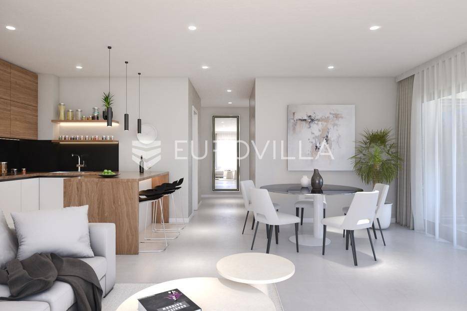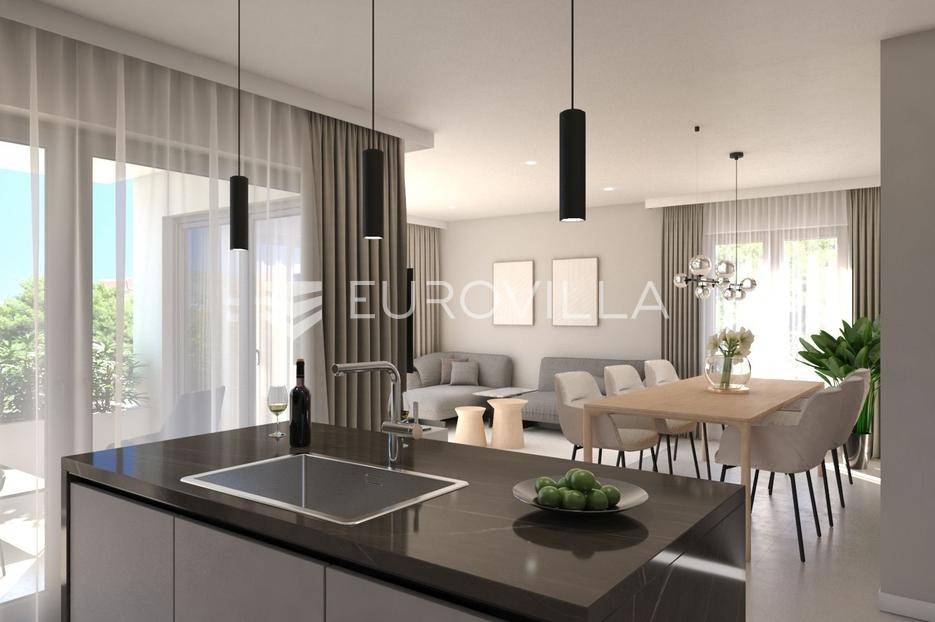 Kaštel Stari luksuzna novogradnja, zgrada s garažom. Komforan trosoban stan, smješten na drugom katu urbane zgrade s liftom i podzemnom garažom.Sastoji se od kuhinje s blagovaonicom i dnevnog boravka otvorenog tipa (33,3 m2), hodnika, tri komforne spavaće sobe (jedna s vlastitom en- suite kupaonico, a jedna zamišljena kao garderoba), dvije kupaonice, te lođa veličine 13,5 m2 i balkona sa žardinjerama od 2,6 m2.Potpuno opremljena kupaonica i kuhinja visokog standarda. Ukupne tlocrtne površine 101,1 m2; zatvoreni stambeni dio površine 85 m2 te velika natkrivena terasa sa žardinjerama, veličine 16,1 m2.Dodatna opcija je kupnja garažnog mjesta, ostave ili vanjskog parkinga.Nekretnina je odlično ulaganje za tvrtke u sustavu PDV-a.Uređen okoliš i automatiziran sustav navodnjavanja zelenih površina te je zasađeno mediteransko odraslo bilje a zgrada ima i osobu zaduženu za brigu i održavanje prostora i zelenila.Orijentacija stana je jug- istok, a velike staklene stijene osiguravaju obilje prirodnog svjetla i prozračnost, što doprinosi komforu življenja u ovoj nekretnini.Odlična pozicija, u blizini svih sadržaja potrebnih za ugodan život, sve na par min hoda, kao i plaža te šetnica uz more. Izvrsna prometna povezanost i komforan pristupni put do zgrade. Međunarodna Zračna luka Split udaljena je 10 km, a u blizini je i poznata marina za brodove "Kaštela", te izvrsna pristupačna brza cesta.Grad Kaštela, s jednom od najduljih obala u Hrvatskoj, smješten je između dva UNESCO-ova grada, Splita i Trogira do kojih se stiže kratkom i ugodnom vožnjom. Zahvaljujući izvrsnoj lokaciji, predivnom prirodnom okruženju i bogatoj ponudi sadržaja, predstavlja idealno mjesto za ugodan i kvalitetan život.Planirani završetak radova 02/2026. godine.Visoko kvalitetna gradnja i korištena oprema:postavljeni podovi, parket i keramičke pločice visoke kvaliteteelektrično podno grijanje s digitalnim upravljanjem instalirano u kupaonicikompletna opremljeno kupaonica (električni bojler za grijanje vode, sanitarijom, walk-in tuš u okviru zadanog cjenovnog ranga)ulazna protuprovalna i protupožarna vrataInverter klima uređaj snage 3,5 kW u dnevnom boravku i svim sobamaunutarnja stolarija bijele boje i ravnih, modernih linijavanjska stolarija antracit PVC, s podizno kliznim stijenkamaoluci skriveni u fasadivrhunska toplinska i zvučna izolacija, vanjska fasada 8 cm kamena vunaNekretnina će biti izvedena u rangu A+ energetskog certifikata sukladno standardima.Za više informacija stojimo Vam na raspolaganju.... Više na eurovilla.hr, ID: 923297