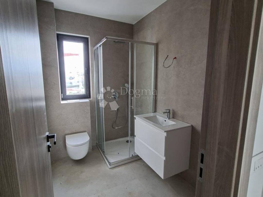 Moderna i kvalitetna gradnja uključuje podno grijanje u cijelom stanu osim u sobama, klima uređaj , kvalitetnu PVC stolariju sa troslojnim staklima i komarnicima. Odlična zvučna i toplinsku izolacija. Protuprovalna i protupožarna vrata