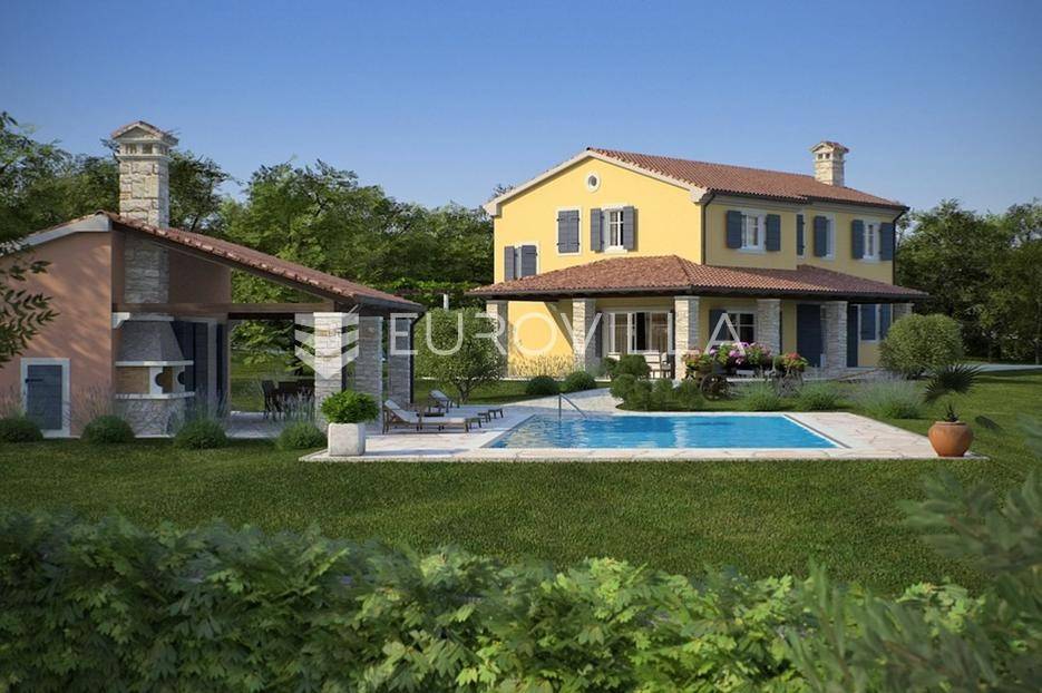 U srcu netaknute prirode središnje Istre, u mirnom i zelenilom okruženom Trvižu, prodaje se ekskluzivno zemljište ukupne površine 40.789 m2 s pravomoćnom građevinskom dozvolom i započetom gradnjom.Ova jedinstvena nekretnina nudi savršenu kombinaciju privatnosti, luksuza i prirodnog ambijenta, idealno za privatnu rezidenciju ili investiciju u luksuzni turizam.Projekt obuhvaća:1. Glavna vila – 547 m2Katnost: prizemlje + 1. kat3 prostrane spavaće sobePredviđen moderan raspored s naglaskom na komfor i eleganciju2. Gostinjska kuća – 153,42 m2Katnost: podrum + prizemlje1 spavaća sobaIdealno za goste ili osoblje3. Bazen – 84 m2Prostrani bazen savršeno uklopljen u prirodni ambijentStatus projekta:- Izrađena kompletna projektna dokumentacija za glavni projekt- Ishođena pravomoćna građevinska dozvola- Prijavljen početak gradnje- Plaćen komunalni doprinos- Izgradnja temelja glavnog objektaKupcu se pruža mogućnost kupnje u trenutnoj fazi (s temeljima) ili kompletne izgradnje svih objekata po dogovoru.Velika površina zemljišta osigurava potpunu privatnost, mir i brojne mogućnosti dodatnog uređenja (maslinik, vinograd, sportski sadržaji, wellness zona i sl.).Lokacija nudi savršen balans između izoliranosti i dobre prometne povezanosti – Pazin i svi potrebni sadržaji nalaze se na kratkoj udaljenosti.Mogućnost dogovora oko završetka projekta po sistemu “ključ u ruke”.Za sva dodatna pitanja ili dogovor oko razgledavanja, stojimo vam na raspolaganju.... Više na eurovilla.hr, ID: 930088