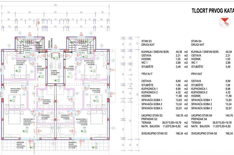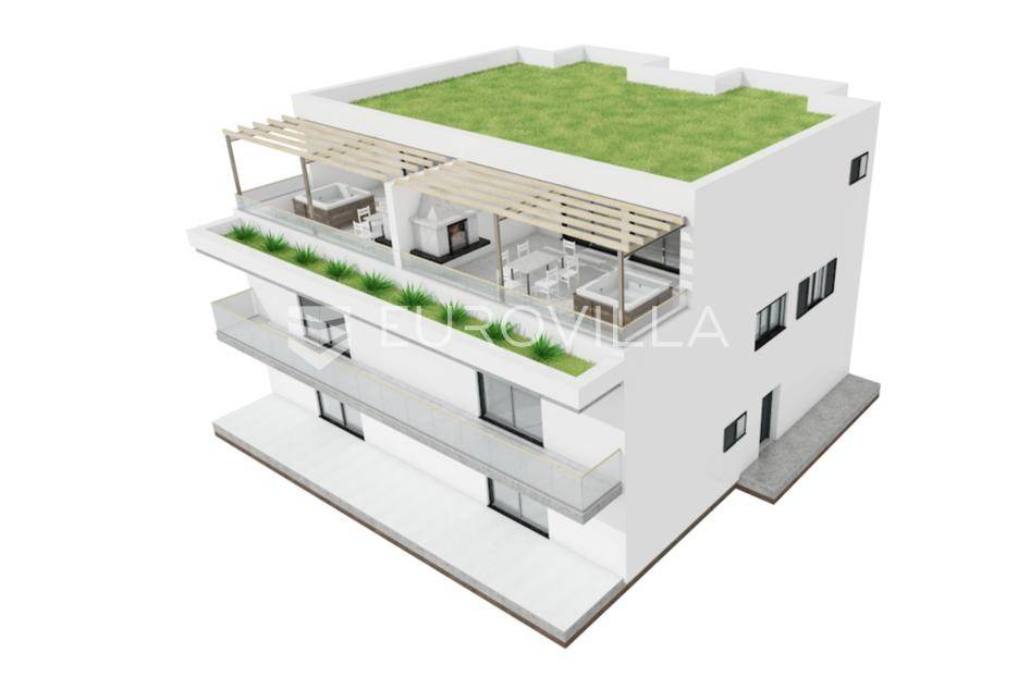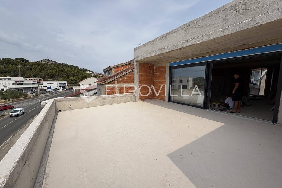 Šibenik, Crnica, NOVOGRADNJA, trosoban, dvoetažan stan neto korisne površine 166,34 m². Stan se nalazi na prvom i drugom katu moderne zgrade na odličnoj lokaciji. Pripadaju mu dva parkirna mjesta pored zgrade. Površina zatvorenog prostora je 140,76 m², površina terase je 39,51 m², te površina balkona je 5,82 m².Stan se sastoji od prvog kata na kojem su tri spavaće sobe, od kojih master soba ima privatnu kupaonicu, walk-in ormar te izlaz na balkon. Uz to na prvom katu nalazi se još jedna zasebna kupaonica. Unutarnjim stepenicama dolazi se na drugi kat gdje su dnevni boravk s kuhinjom i blagovaonicom i WC. Iz boravka izlazi se na veliku terasu s pogledom na more. U stan su ugrađeni klima uređaji, te je postavljena vrhunska toplinska i zvučna izolacija, te velike staklene stijene s troslojnim staklom.Zgrada ukupno ima 4 stana i nalazi se 350 metara od mora. Lokacija je odlična, u blizini centra grada, te u blizini plaže Banj. Zgrada je trenutno u izgradnji, te je planirani završetak proljeće 2026. godine.Za sve ostale informacije stojimo na raspolaganju.... Više na eurovilla.hr, ID: 946991