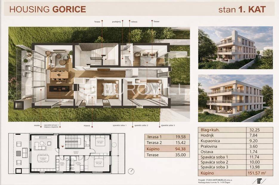 Remete, Gorice, građevinsko zemljište s pravomoćnom građevinskom dozvolom i kompletnom projektnom dokumentacijom za izgradnju stambene zgrade s tri stambene jedinice.Prema važećem projektu predviđena je izgradnja:prizemljaprvog katadrugog kataSvaki kat projektiran je kao zaseban stan, što nekretninu čini izuzetno pogodnom za investiciju, daljnju prodaju ili najam. U neposrednoj blizini nalaze se svi potrebni sadržaji.Za sve ostale informacije stojimo Vam na raspolaganju.... Više na eurovilla.hr, ID: 953328