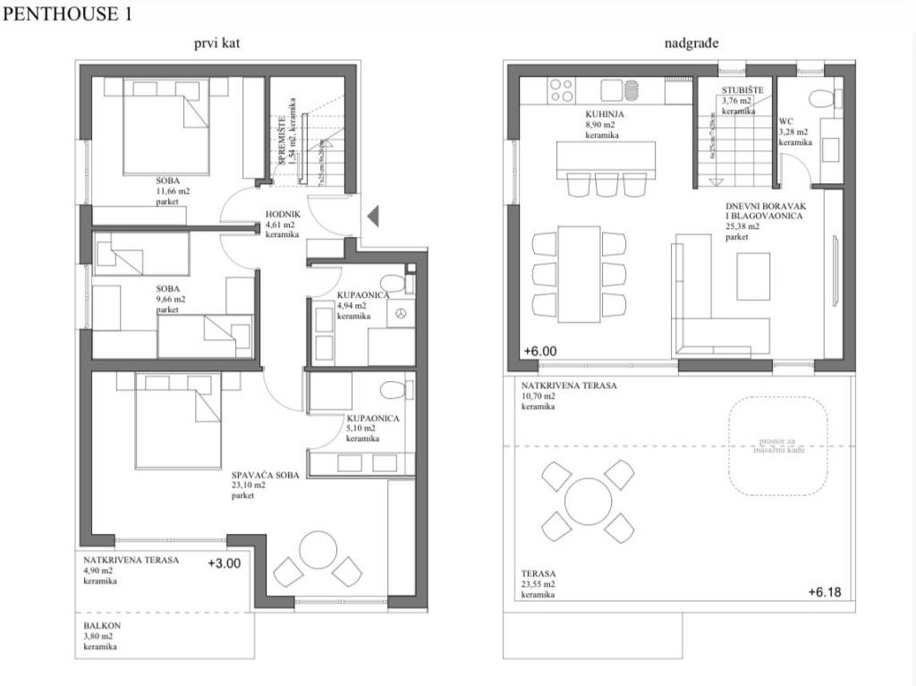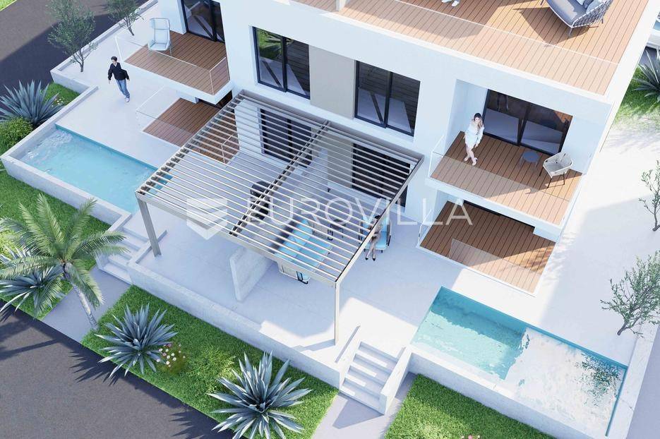 Kaštel Sućurac, luksuzan trosoban penthouse u novogradnji položen na prvom katu modernog stambenog objekta.Nekretnina je smještena na parceli površine 603 m2, u novoizgrađenom privatnom naselju luksuznih vila, na putu od Splita prema zračnoj luci.Stan je podijeljen na dvije etaže te je stambena površina 101.81 m2.Na prvoj etaži se nalaze tri spavaće sobe, spremište, hodnik, dvije kupaonice i balkon površine 8.73 m2.Na drugoj etaži se smjestio dnevni boravak i blagovaonica, kuhinja, wc i terasa površine 34.20 m2 s koje se pruža predivan pogleda na more i grad Split.Uz stan idu dva vanjska nenatkrivena parking mjesta.Planirani završetak je treći kvartal 2026.Za dodatne informacije, stojim na raspolaganju.... Više na eurovilla.hr, ID: 956515